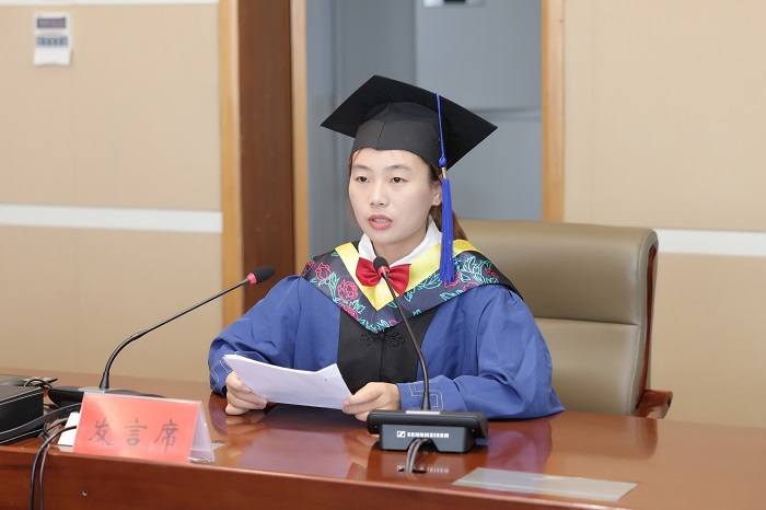 机械优集学院周海教授代表导师发言。考取江苏大学博士研究生、国家奖学金获得者、优秀毕业研究生Y化工191班王艳同学代表毕业生发言。