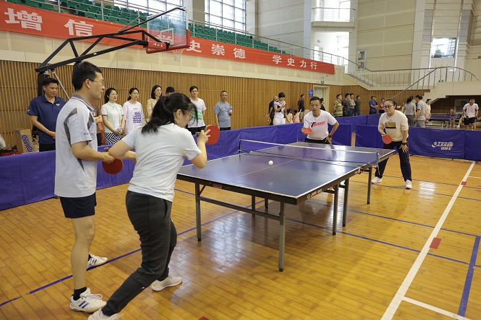 为丰富教职工业余文化生活,激发教职工积极参与体育锻炼的热情,6月18日,我校在建军东路校区体育馆举办了“国缘杯”第十届教职工乒乓球混合团体赛。校长、党委副书记方海林,党委副书记薛浩,党委常委、副校长邵荣、宋长春出席开幕式。工会主席谢毅敏,体育学院党总支书记杨汉华,校乒协主席、继教学院院长、党总支书记陈志华,江苏今世缘酒业销售有限公司盐城大区盐城市区办事处经理徐朋、副经理王冲,江苏熙熙国际控股集团有限公司销售总监梁中成等参加。谢毅敏主持开幕式。
