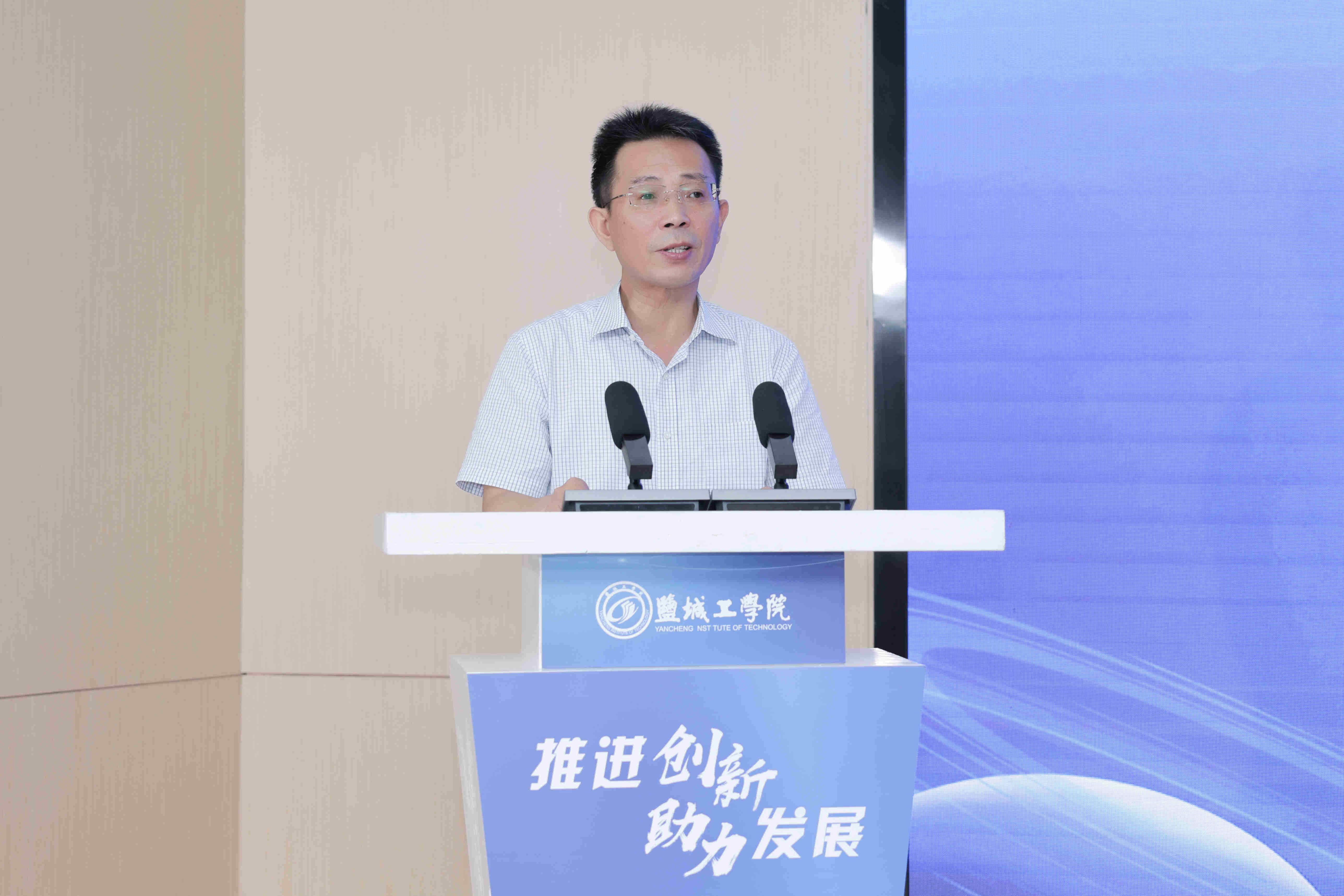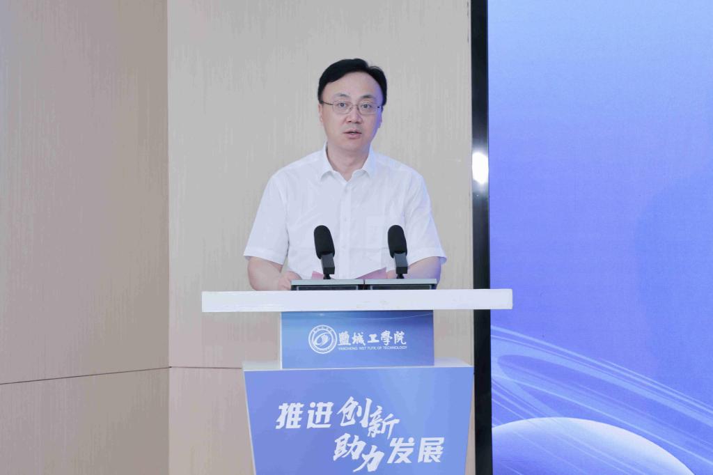 崔刚代表学校致辞。他介绍了我校深化校地融合、产教融合、科教融合的做法与成效。他表示,我校将进一步加强与各县市区、各个企业的沟通合作,加快科技成果的推广应用,不断提高我校促进盐城经济社会发展的贡献度,为盐城地方经济社会高质量发展提供更加坚实的科技与人才支撑。