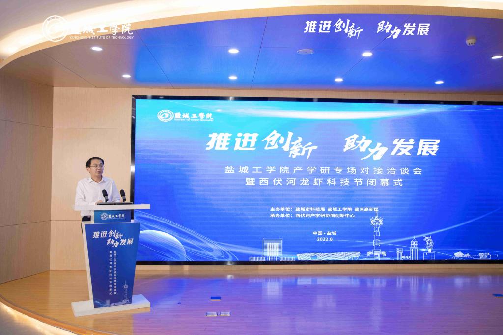 8月16日上午,我校“推进创新 助力发展”产学研专场对接洽谈会暨西伏河龙虾科技节闭幕式在西伏河产学研协同创新中心举办。我校副校长崔刚,市政府副秘书长颜彦、市科技局局长韦向东、盐南高新区副主任王立辉等出席并讲话,副校长、市政协副主席丁成主持。