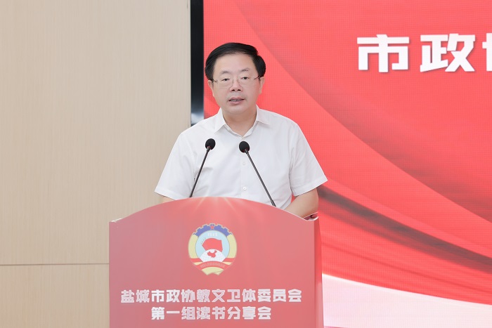 读书分享会上,孙福军领学《习近平谈治国理政》第四卷中收录的习近平总书记在教育文化卫生体育领域专家代表座谈会上的重要讲话精神,江苏医药职业学院药学院院长于广华领学习近平总书记关于高职教育方面的有关讲话精神,周为仲介绍“双减”政策及我市“双减”工作推进情况,盐城市康居路初级中学校长陈巧云、盐城市第一小学副校长祁生洋分别交流读书心得体会。活动中,还开展“学习强国”答题竞赛活动,由我校发改办主任、高教院院长宋青主持,各位委员积极参与,现场形成了良好的学习氛围。