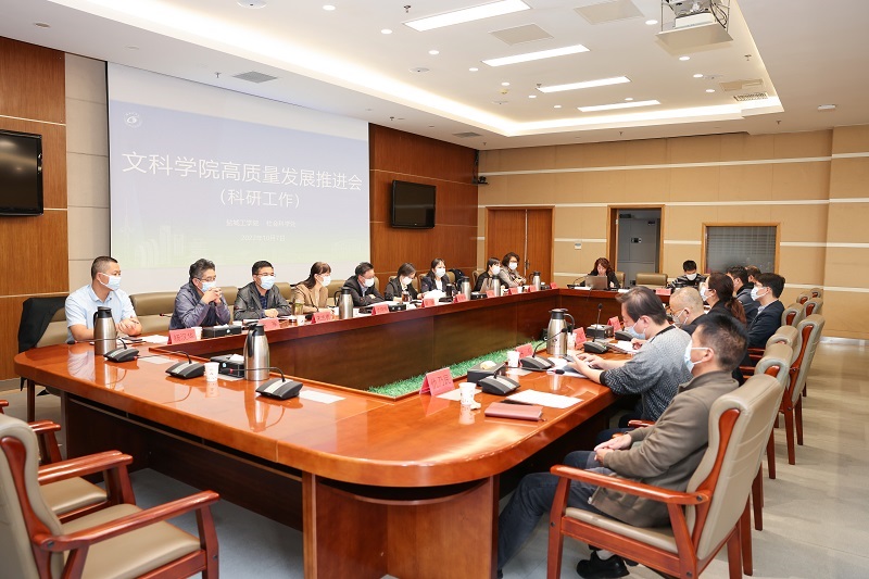为推进我校文科学院高质量发展目标任务顺利完成,促进我校哲学社会科学科研工作提质增效,10月7日下午,学校在希望大道校区行政楼九楼会议室召开文科学院高质量发展(科研工作)推进会,校党委副书记薛浩出席并讲话。社会科学处处长包雅玮主持会议,社会科学处、高等教育研究院全体人员,文科学院院长、分管科研副院长和科研秘书,市级以上智库及平台负责人等参加。