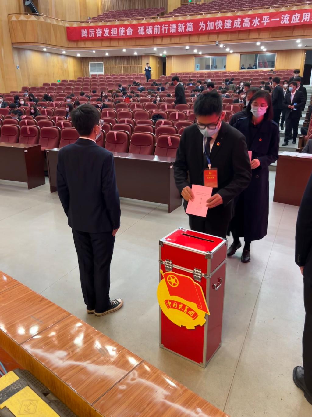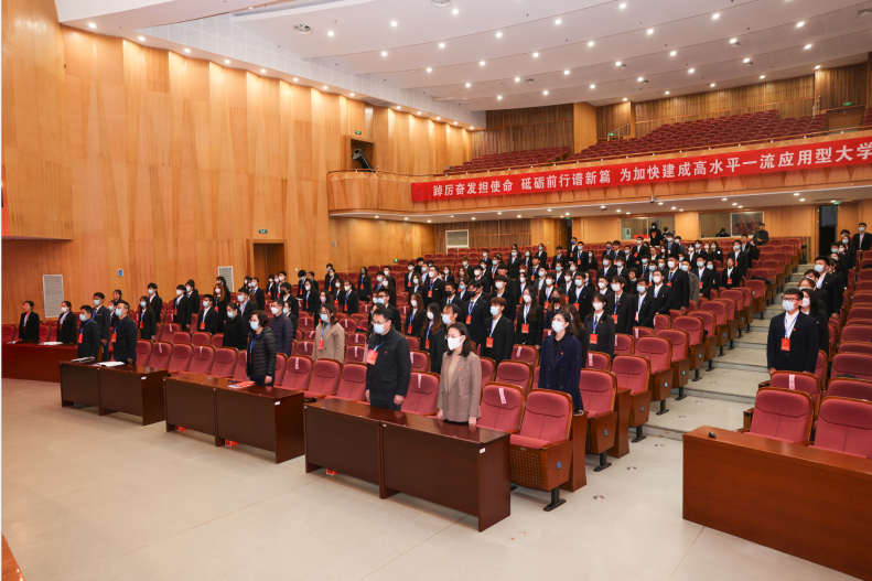高举旗帜跟党走,青春建功新时代。本次大会不仅是一次统一思想、凝聚共识的青春盛会,更是一次学习贯彻党的二十大精神、习近平总书记在庆祝中国共产主义青年团成立100周年大会上的重要讲话精神的动员会、学习会、宣讲会。学校共青团将进一步明确工作方向、明晰着力重点、突出自身优势,在学校党委和上级团组织的正确领导下,不断增强引领力、组织力、服务力,为加快建成高水平一流应用型大学,为实现中华民族伟大复兴的中国梦贡献青春力量。
