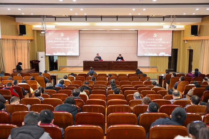 王资生强调,全体师生员工要把学习宣传贯彻党的二十大精神是当前和今后一个时期的首要政治任务,深入推动习近平新时代中国特色社会主义思想和党的二十大精神入脑入心,在思想上政治上行动上更加自觉更加主动地拥护“两个确立”,增强“四个意识”、坚定“四个自信”、做到“两个维护”,弘扬伟大建党精神,坚持为党育人、为国育才,坚持立德树人,凝心聚力,勇毅前行,为学校事业高质量发展贡献新的力量。