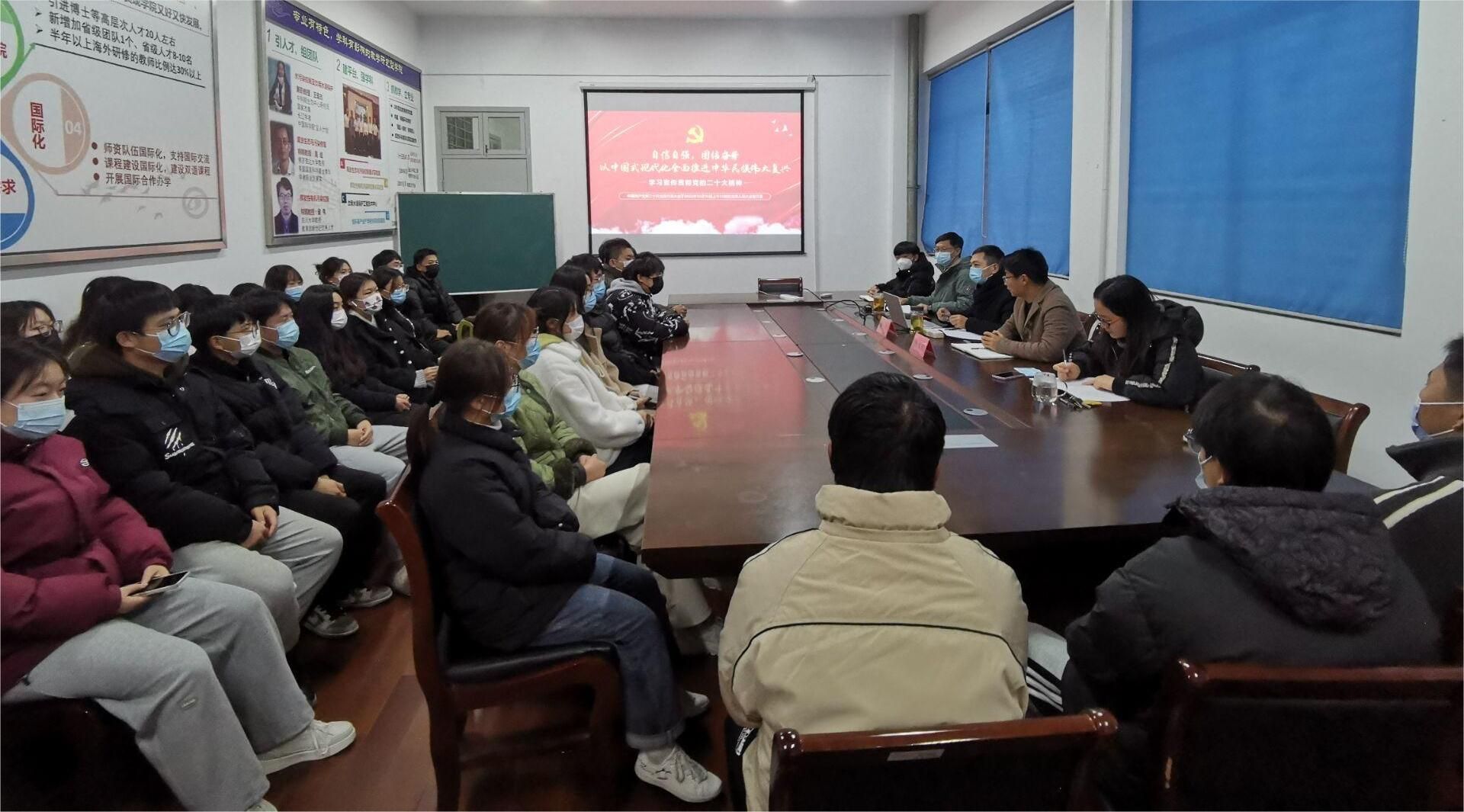 12月6日晚,校党委宣讲团成员、经管学院巡讲团团长、院党委书记卜树春为全院学生党员、全体2019级大学生上党课,专题宣讲党的二十大精神。学生党员代表、2019级学生代表、辅导员老师在仁和楼B502会议室参加,其他学生党员、2019级其他学生通过线上形式参加学习。