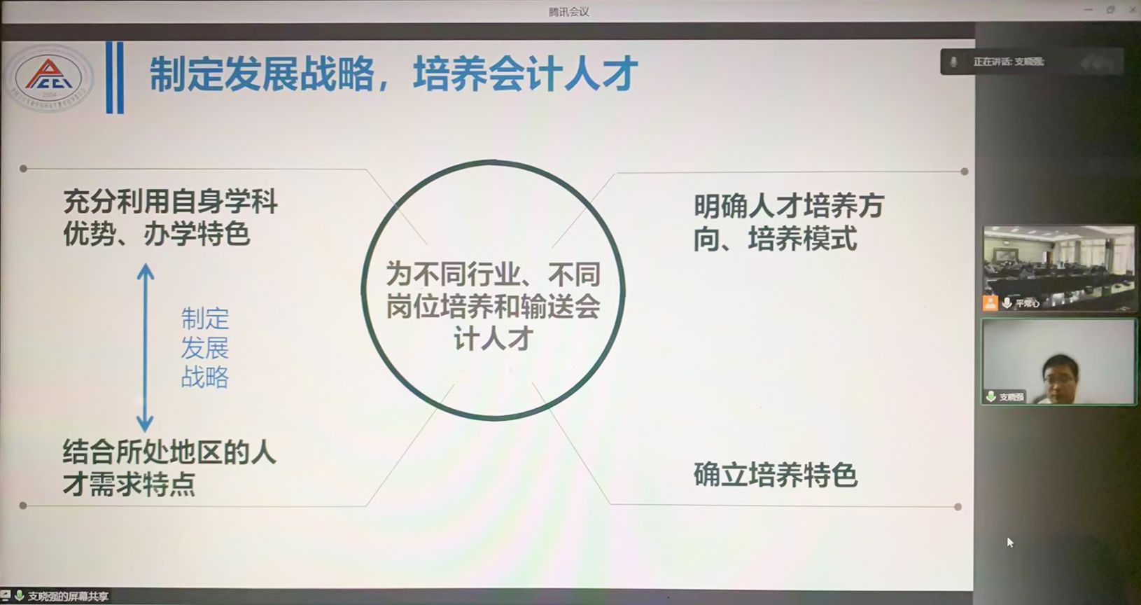 12月12日,在希望大道校区行政楼9楼视频会议室,中国人民大学杰出学者特聘教授支晓强应邀作《培养守正创新的卓越会计人才》报告。校长、党委副书记邵荣出席,党委常委、副校长崔刚主持报告会。研究生院、财务处负责人,经管学院班子成员、会计学系全体教师参加。