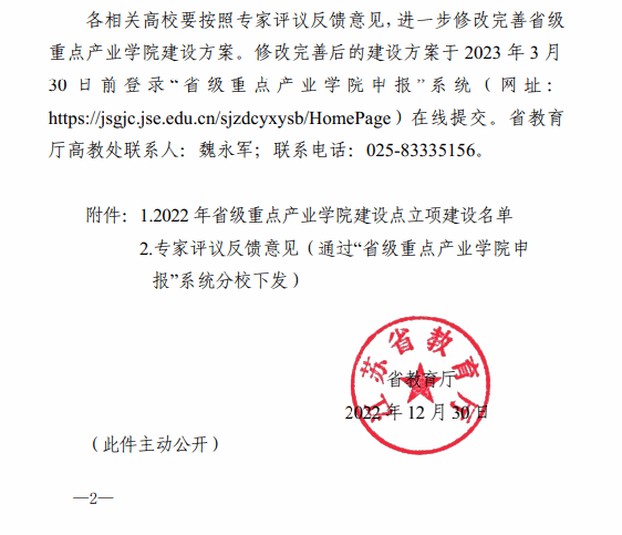 近日,江苏省教育厅下发了《省教育厅关于公布2022年省级重点产业学院建设点遴选结果的通知》(苏教高函〔2022〕18号),我校悦达新能源汽车学院获批省级立项。这是继我校新能源学院获得省级重点产业学院后,又一产业学院获此殊荣。
