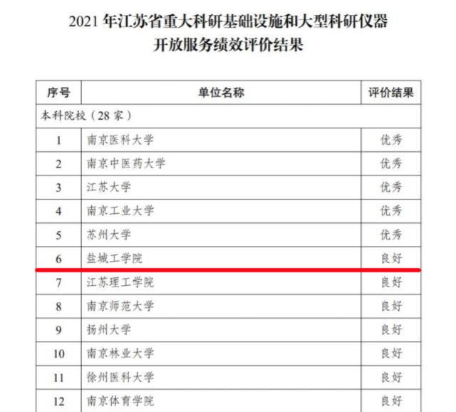 近日,江苏省科技厅联合省财政厅、省教育厅发布了2022年省属高校和科研院所等管理单位大型科研仪器开放服务绩效评价结果,我校荣获第六名,良好格次第一名。此项绩效评价工作已连续开展3年,我校在2020年、2021年的评价中分别荣获第七名、第六名,良好格次第三名、第一名,在同类院校中名列前茅。江苏省大型科研仪器开放服务绩效评价主要从资源整合能力、开放服务成效、运行管理水平及信用与安全等四个方面开展考核。