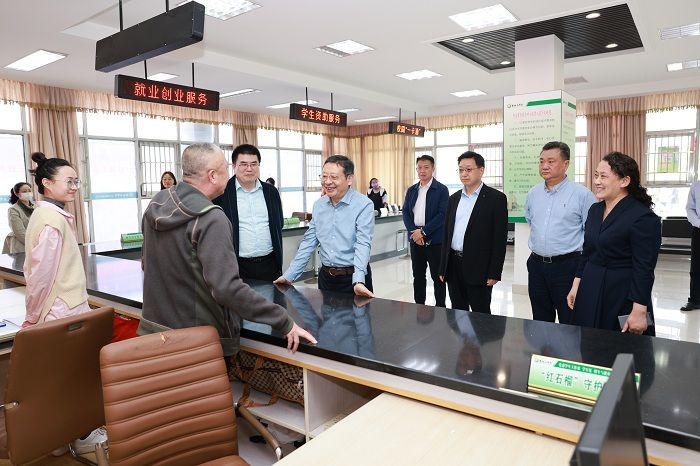 徐子敏依次参观了学校土木工程学院“砼心苑”一站式试点社区辅导员工作室、党员活动室、图书馆学生服务场所,察看了希望大道校区一组团“一站式”学生社区建设点,与专职辅导员、学生党员就社区党建工作、教育管理、活动开展、咨询服务等进行了细致交流。随后,他来到大学生活动中心一楼,视察学生事务服务大厅运行情况,在“红石榴”守护驿站服务台前,与学校新疆派驻教师亲切交谈,仔细询问了学校少数民族学生基本底数和思政育人、管理育人、资助育人等工作的落实措施;在心理健康咨询服务台前,他详细了解了学校心理健康教育专职教师配备、心理咨询服务体系建设和心理健康教育工作条件完善等情况。