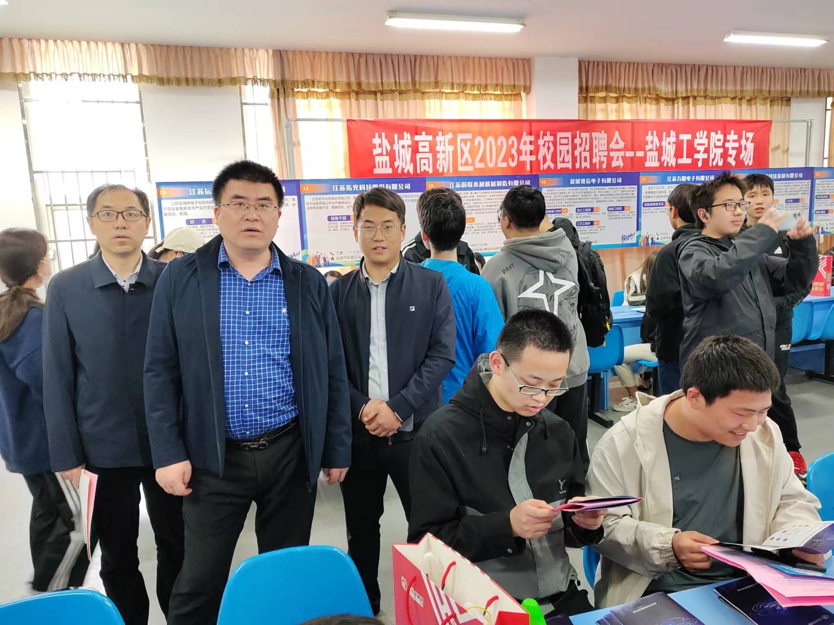 为深入实施“黄海明珠”人才计划和驻盐高校学子“留盐城高新区行动”,促进更多毕业生留盐城高新区就业创业,4月19日下午,在我校希望大道校区大学生活动中心一楼就业市场举办“智汇高新·共赢未来”盐城高新区组团园区企业走进盐城工学院专场招聘会,党委常委、副校长张勤芳到现场指导。盐城高新区智创园管理办负责同志、校招生与就业创业指导处负责同志、相关学院分管书记、学工办主任、毕业班辅导员以及2023届毕业生等参加。