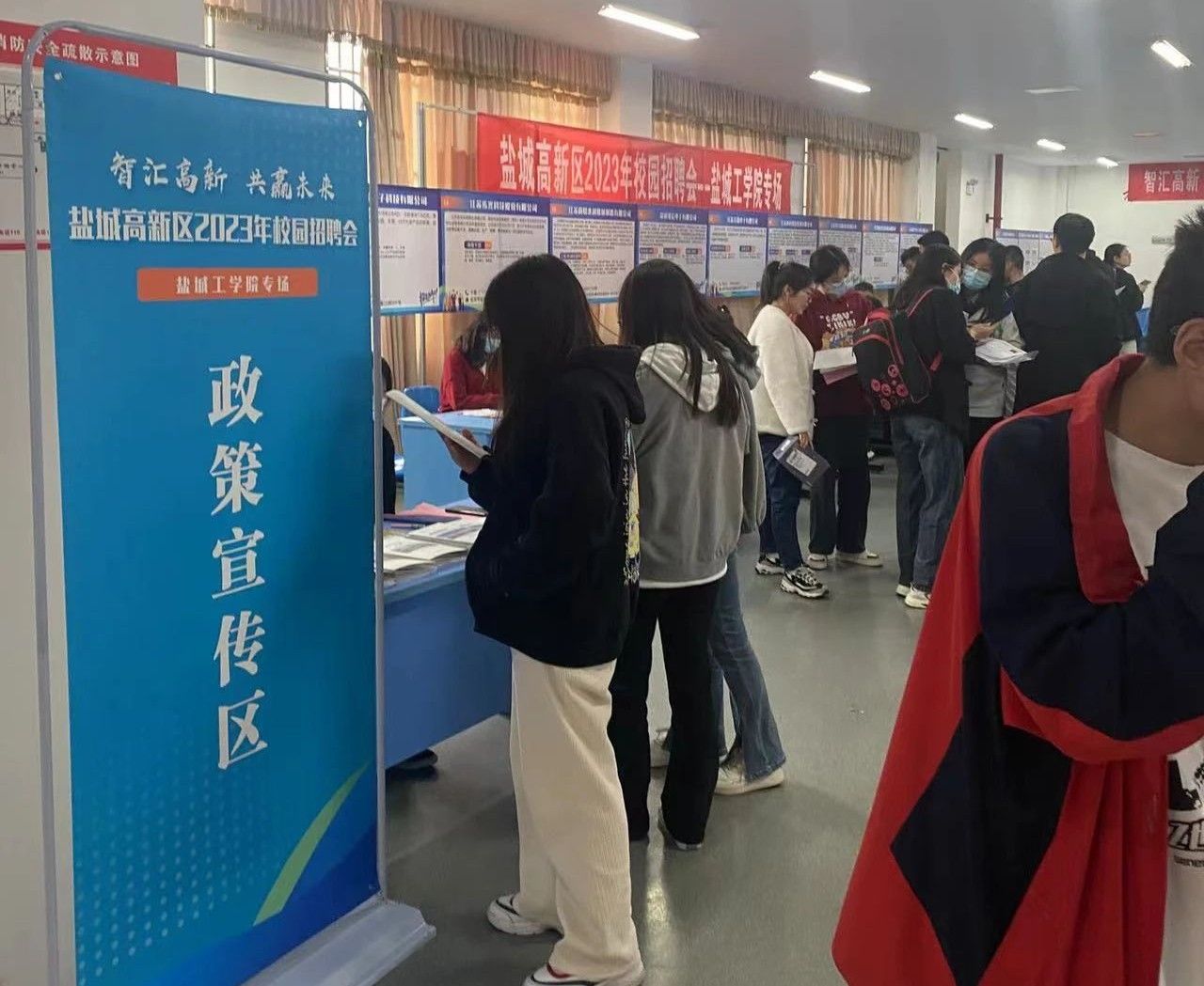 据悉,盐城维信电子有限公司、江苏神鹤科技发展有限公司等26家重点企业参加了此次招聘活动,提供了研发工程师、机械设计工程师、行政主管等300多个岗位,吸引400余名毕业生现场应聘,初步达成就业意向152人。招聘会现场还设置了人才政策宣传区,向我校毕业生宣传“都智汇”人才政策及高新区产业发展、配套建设等情况,让同学们对盐城高新区有更深入的了解。