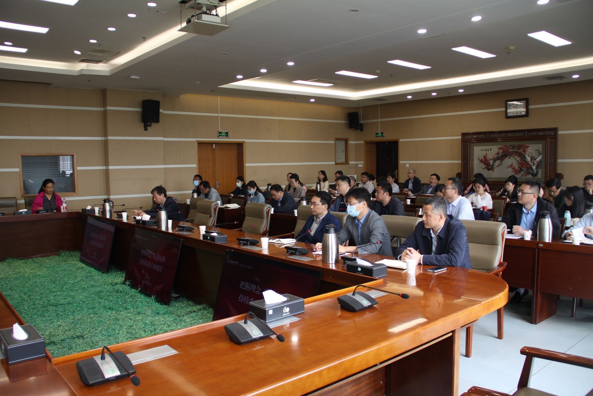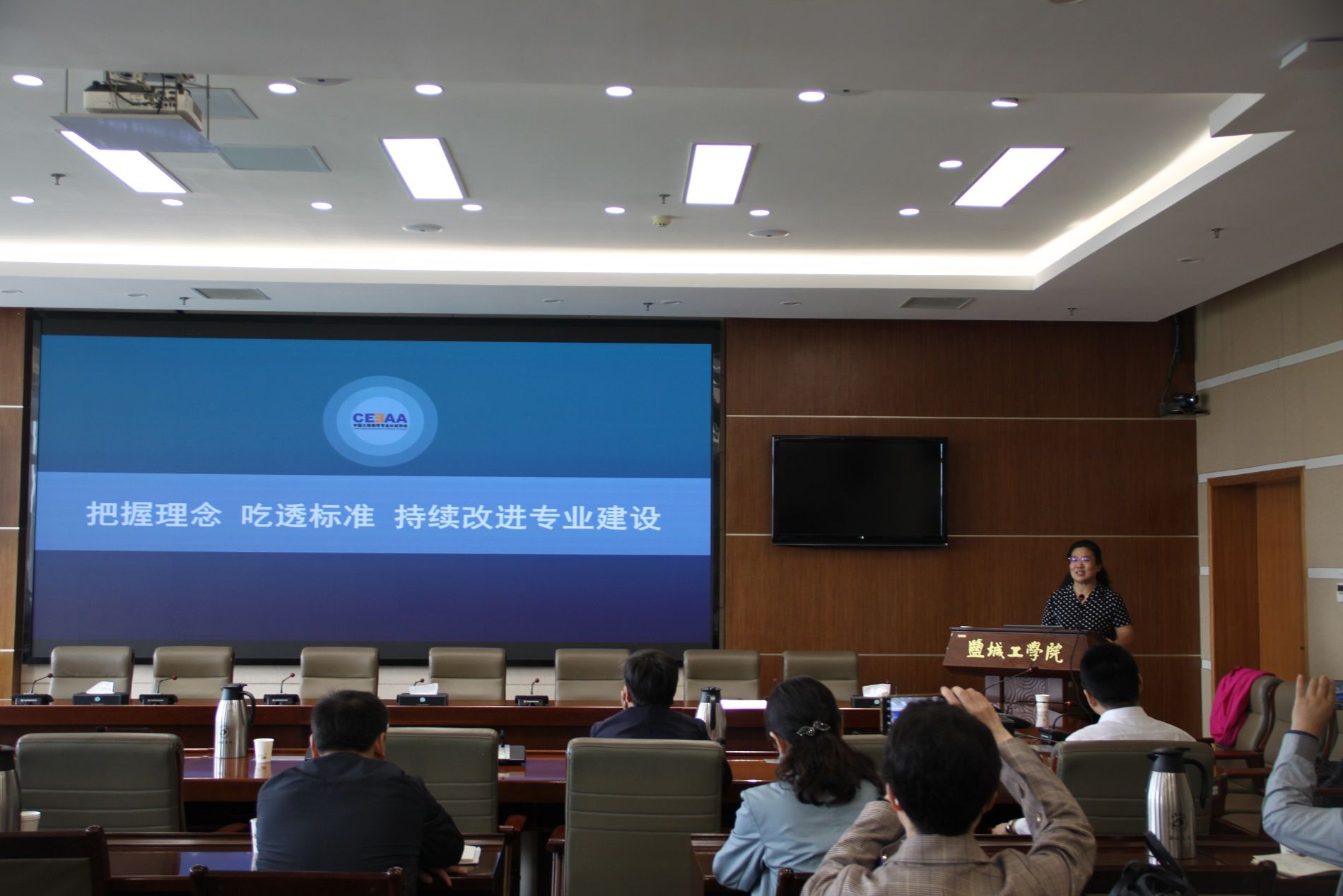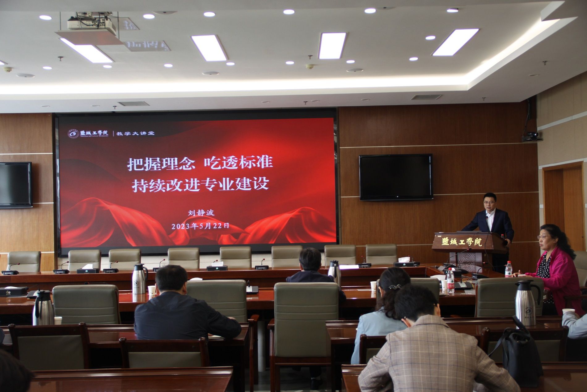5月22日上午,在希望大道校区行政楼9楼视频会议室,教育部食品科学与工程专业教学指导委员会副主任刘静波教授应邀走进盐城工学院“教学大讲堂”,作题为《把握概念 吃透标准 持续改进专业建设》的专题报告。党委常委、副校长王伟主持,有工程认证专业的学院院长和专业建设负责人、食品专业全体教师,以及相关职能能部门人员参加。