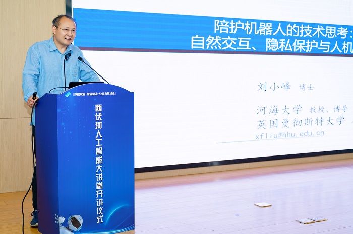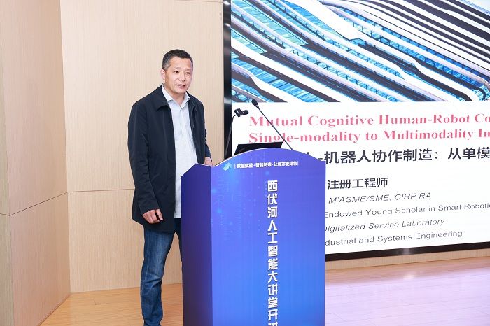 仪式的第二阶段是大讲堂的首次活动。郑湃和刘小峰分别就“互认知人机协作制造范式—从单模态到多模态智能的探索”和“陪护机器人思考—自然交互、混合增强智能与隐私保护”作了精彩的报告。王如刚主持报告会。