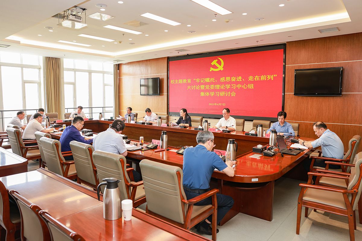 根据学校主题教育工作安排,6月7日下午,在希望大道校区行政楼9楼视频会议室,校党委理论学习中心组举行集体学习研讨会,梳理总结前期集中学习、专家辅导、交流研讨、个人自学和调查研究成果,开展“牢记嘱托、感恩奋进、走在前列”大讨论,进一步推动主题教育取得实效。
