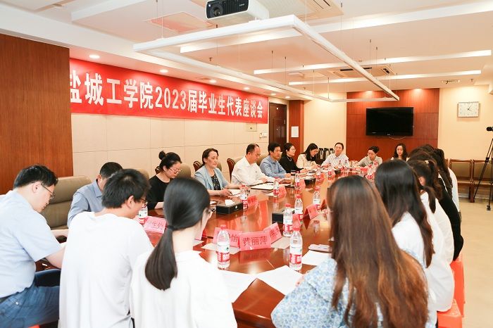 “盐工为学子追梦圆梦搭建了广阔的舞台”“在盐工学习生活这几年,我见证了学校高质量发展行稳致远,感受着学校对学子无微不至的关怀”“不管我们走到哪里,盐工永远是我们的家,希望母校发展越来越好”“我们将始终践行“崇尚科学、勇于创新、敢于担当、追求卓越”的校园主流价值观,坚定信仰,脚踏实地,成为国家和民族的栋梁之才”……座谈会现场气氛热烈而温馨,来自研究生院和二级学院的16位毕业生代表依次发言,分享了求学期间的成长与收获,真切表达了对母校师长的感恩眷念、对同窗好友的祝福不舍和对人生新征程的期待向往,就专业课程设置、学科竞赛、志愿服务、后勤保障等各项工作建言献策。