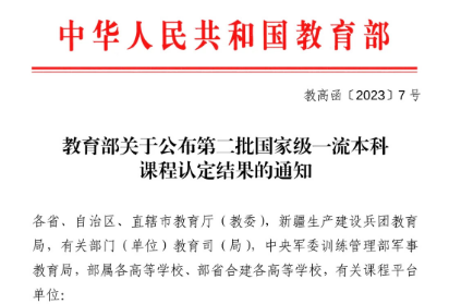 近日,教育部公布第二批国家级一流本科课程认定结果,我校共有4门课程入选。其中,线上一流课程1门、线上线下混合式一流课程1门、线下一流课程1门,虚拟仿真实验教学一流课程1门。截止目前,我校已有国家级一流本科课程10门,获批课程门数位居同类高校前列。