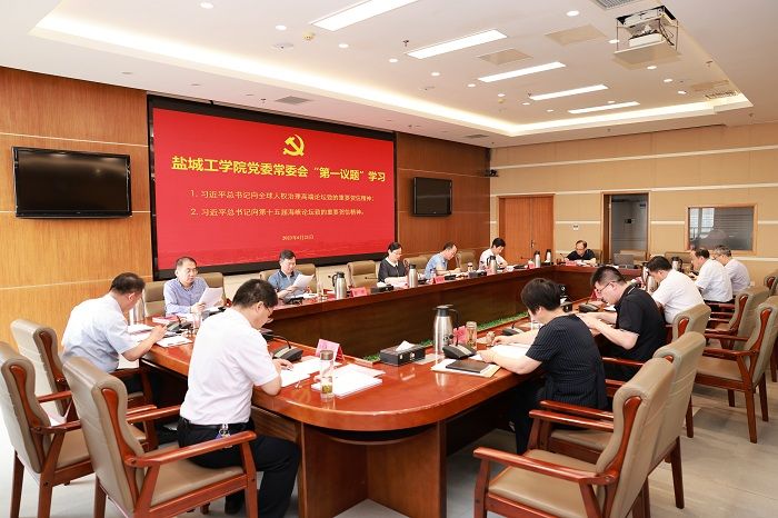 党委书记方海林主持。校长、党委副书记邵荣,党委常委、副校长崔刚、王资生,副校长、盐城市政协副主席丁成,党委常委、纪委书记、省监委派驻监察专员陈伟,党委常委、副校长张勤芳,党委常委、党委统战部部长姚军,党委常委、党委组织部部长邢晓平,党委常委、党委宣传部部长奚新国出席,党办、校办、纪委办等部门主要负责人参加。