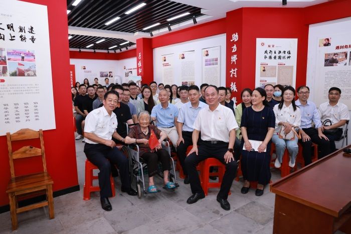 在海安市墩头镇“老兵家园”,全体人员在共和国双百人物、中央党政国家机关干部教育培训师资库特级专家张云泉教授带领下参观了长征园、井冈山五指山、遵义会议会址、党史长廊、红船码头、张云泉事迹展览馆,认真聆听了张云泉革命传统教育和其参军及工作以来的心路历程。过程中,邵荣带队慰问了张云泉的103岁老母亲,进行亲切交谈并合影,对光荣而平凡的母亲表达浓厚的敬意。据悉,“老兵家园”是张云泉退休后为回报家乡在当地党委政府支持下建设的党性教育基地,成为党史学习教育和党性淬炼场所。