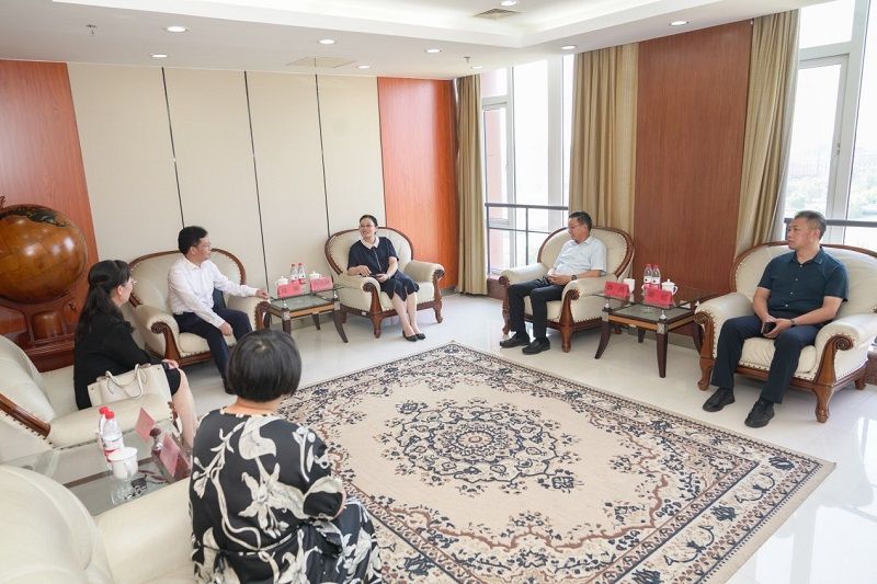 校党委书记方海林与盐城市委组织部常务副部长、市委党建办主任、市新时代党建理论研究与实践研究院常务副院长成辉等人座谈交流