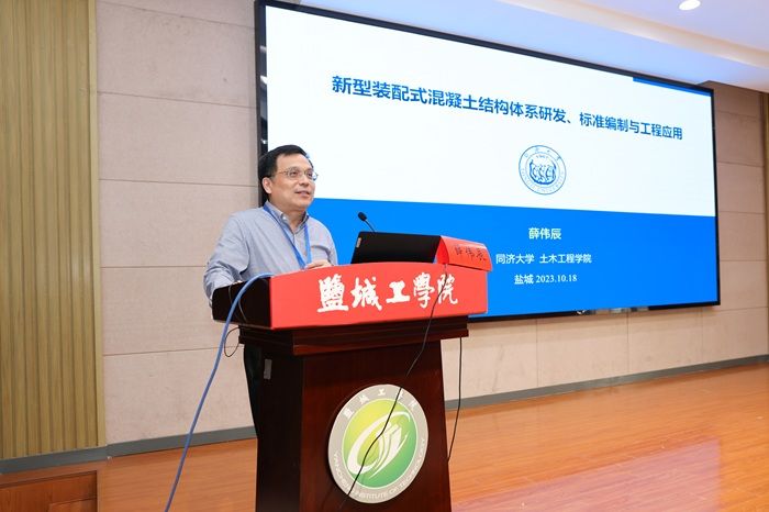 大会邀请中国工程院院士刘加平,教育部“长江学者”、同济大学教授薛伟辰,长大桥梁安全长寿与健康运维全国重点实验室首席专家、江苏大学副校长王景全作学术报告。盐城市人民政府副秘书长张亚钊,盐城工学院校长、党委副书记邵荣,江苏省住房和城乡建设厅科技发展中心副主任张赟,江苏省建筑钢结构混凝土协会执行会长徐家斌分别致辞。江苏省建筑结构混凝土协会会长助理王群依主持会议。