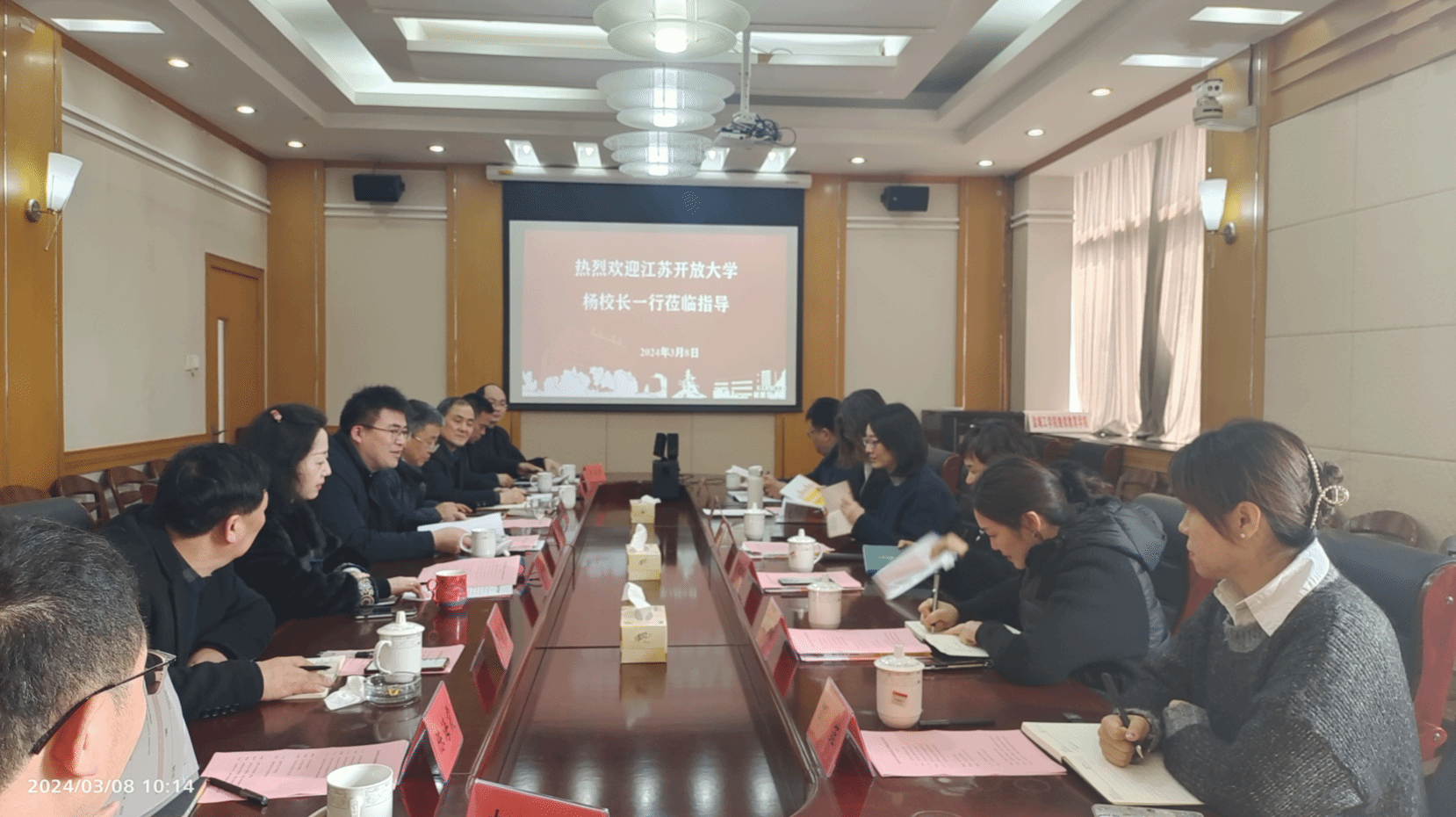 3月8日上午,江苏开放大学党委常委、副校长杨羽一行来我校调研开放大学工作。学校在建军东路校区图书馆301会议室召开工作交流会,校党委常委、副校长张勤芳出席。盐城开放大学副校长、我校继续教育学院副院长夏金海、李晓燕,东台开放大学校长虞静东,建湖开放大学党委委员陈强等参加。