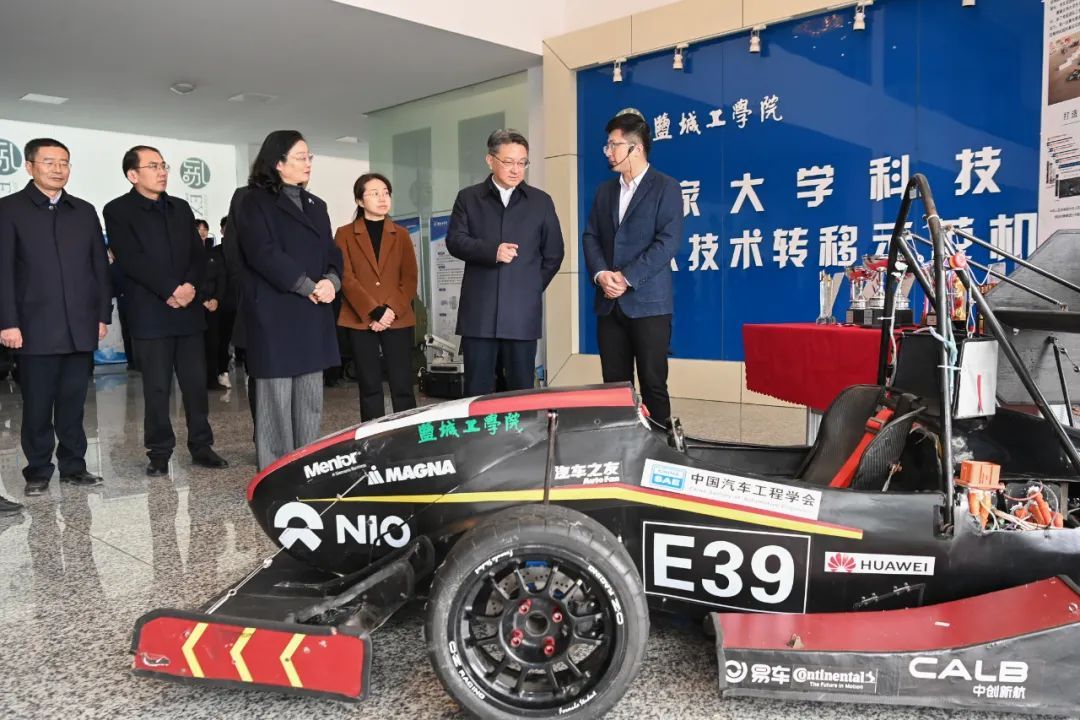 周斌指出,新质生产力是以新产业为主导的生产力,特点是创新,关键在质优,本质是先进生产力。希望学校立足盐城,将学科发展、专业建设和人才培养与盐城产业发展紧密结合;立足自身,推进高等教育改革创新,提升学科竞争力;立足特色,大力推动产学研深度合作,不断提高科技成果转化和产业化水平;努力拼搏,加快建设一流应用型大学,在赋能支撑盐城新质生产力发展上形成更多标志性示范性成果。