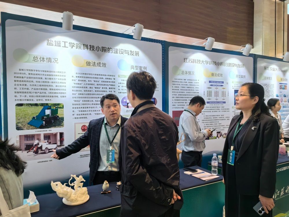 大会设置了科技小院成果展,来自全国各地38所高校、科研院所应邀参展。我校在本次成果展上通过展板和实物展品集中展示了我校科技小院在人才培养、科技创新、社会服务等方面取得的重要成果,并重点推介了我校数字孪生与智能制造科技小院面向盐城地区农业机械装备3D打印与集成应用的创新成果,数字孪生与智能制造科技小院专家卢倩教授在现场进行展品讲解。