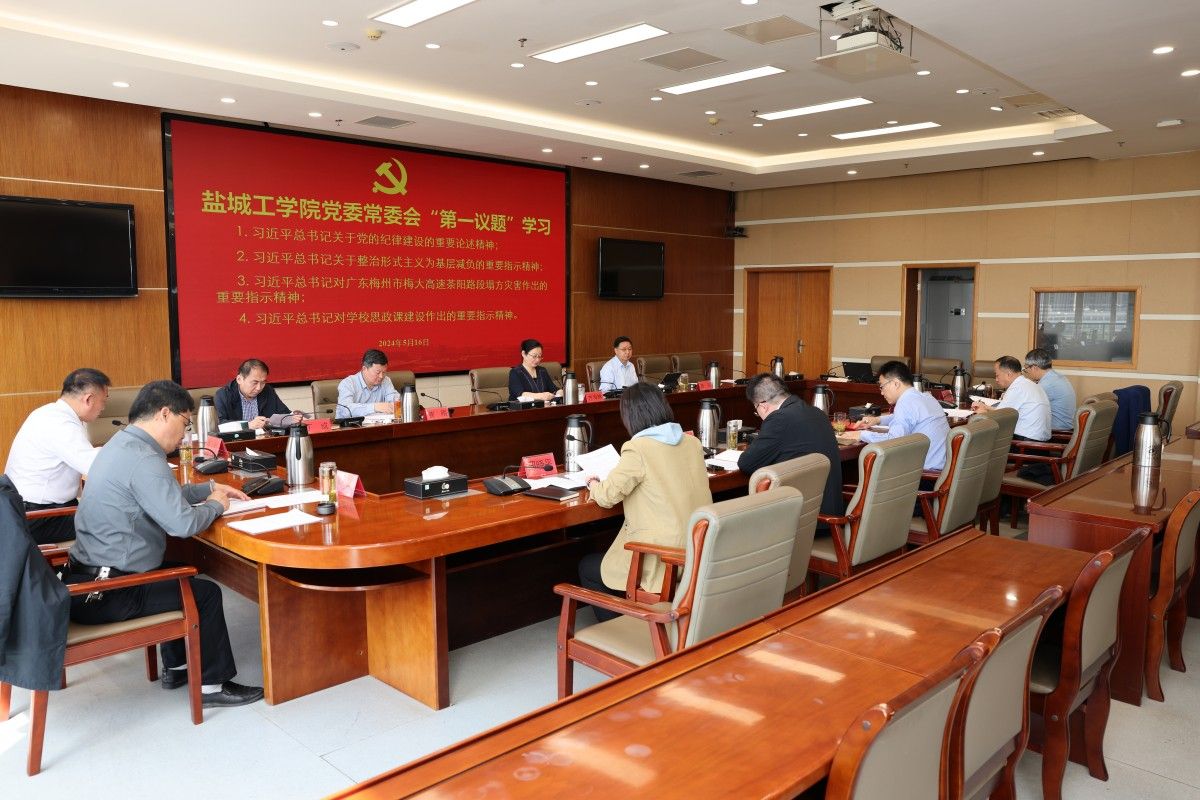 5月16日上午,在希望大道校区行政楼9楼视频会议室,校党委常委会“第一议题”学习习近平总书记关于党的纪律建设、关于整治形式主义为基层减负、对广东梅州市梅大高速茶阳路段塌方灾害、对学校思政课建设作出的重要指示精神。