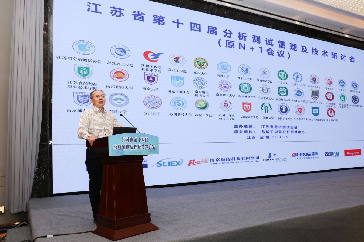 为提升全省高校分析测试技术水平和管理创新能力,加强省内高校分析测试队伍的交流与合作,推动分析测试为科技进步和产业升级服务,由江苏省分析测试协会主办,我校承办的“江苏省第十四届分析测试管理及技术论坛”于 5月18日—19日在盐城举行。省科技厅科技资源统筹服务中心、省分析测试协会领导出席,我校副校长、盐城市政协副主席丁成教授致辞。省内40所高校分析测试领域专家学者、我校产业技术研究院相关负责人等200余人参加,校科学技术处处长高健主持。