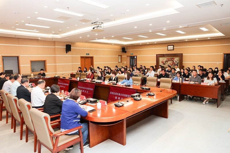 盐城市委统战部副部长、民族宗教事务局局长黄斌与亭湖区委统战部副部长、民宗局局长、侨办主任成莉为区域合作与中华民族共同体研究院揭牌