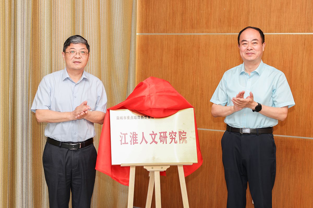 校长、党委副书记邵荣与盐城市社科联党组书记、主席李晓奇为江淮人文研究院揭牌