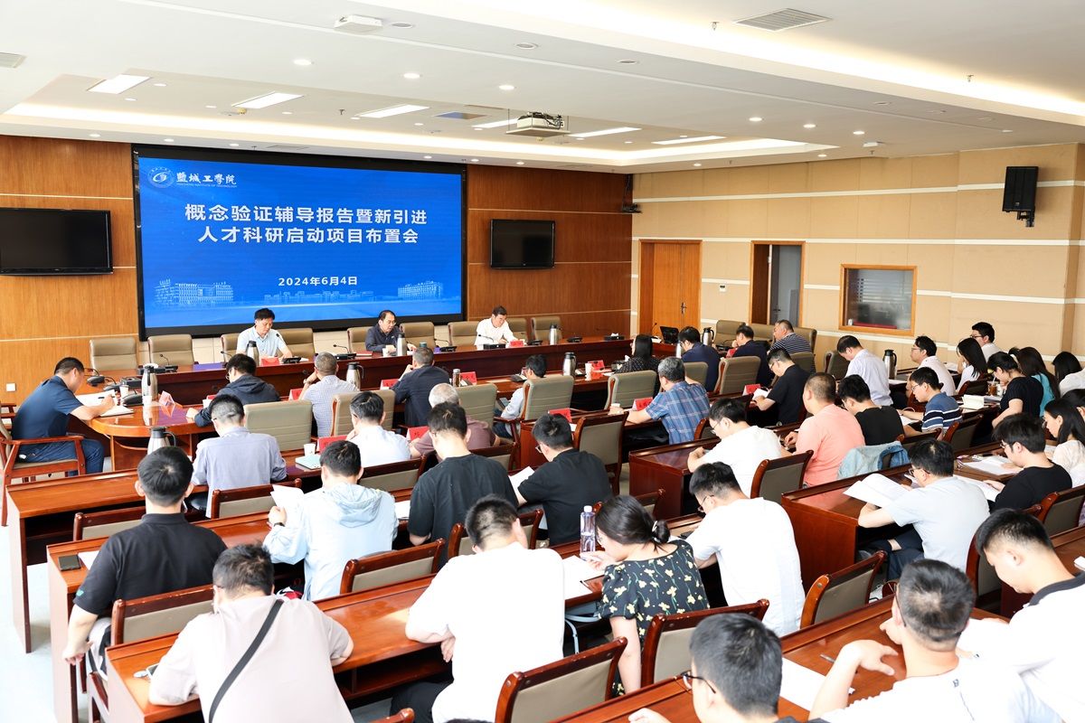 6月4日下午,学校在希望大道校区行政楼九楼视频会议室召开概念验证辅导报告暨新引进人才科研启动项目申报布置会。 副校长、盐城市政协副主席丁成出席。科学技术处处长高健主持,理工类二级学院院长、科研副院长和拟申报2024年高层次人才科研启动项目教师参加。