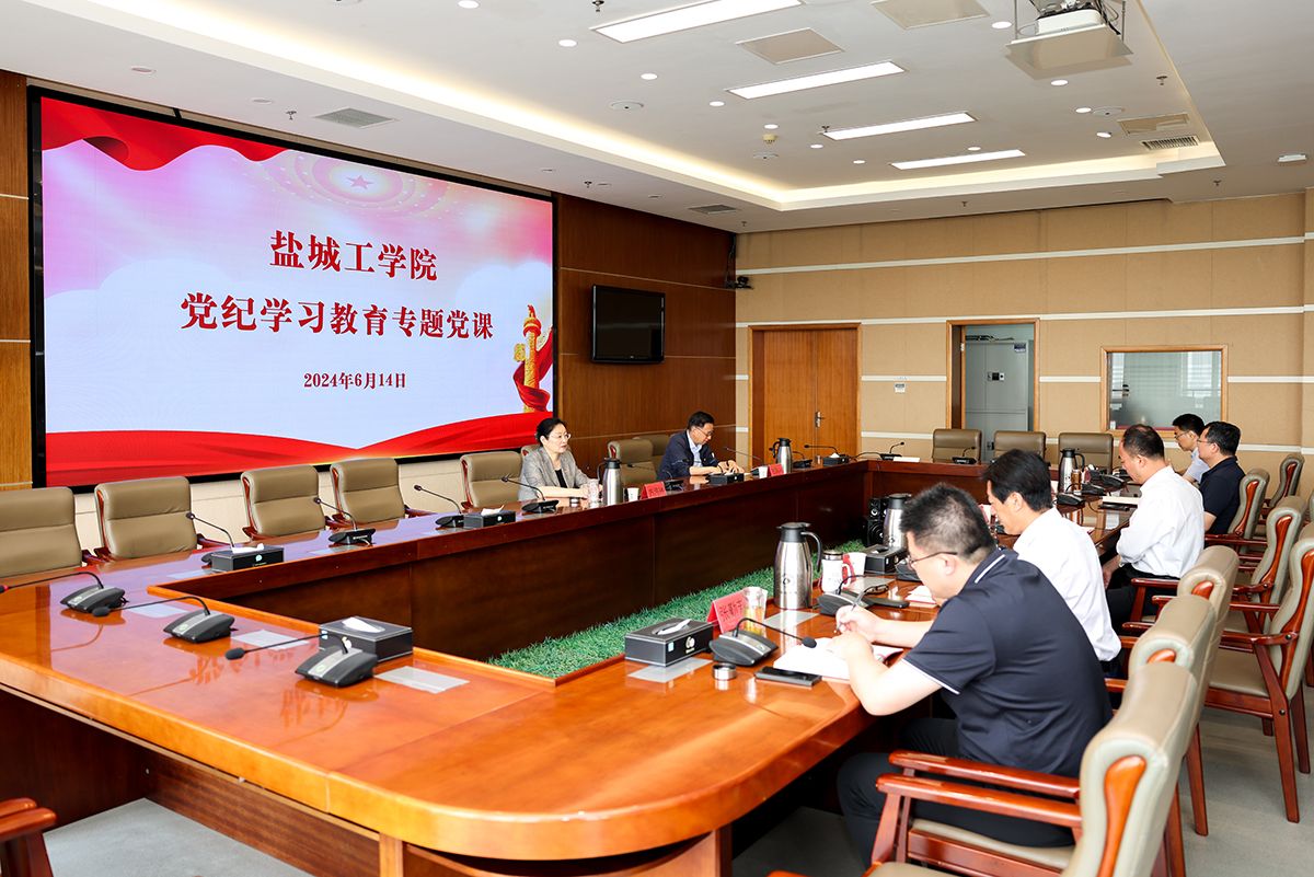为深入学习贯彻习近平总书记关于全面加强党的纪律建设的重要论述精神,推动党纪学习教育走深走实,教育引导党员干部学纪、知纪、明纪、守纪,6月14日上午,在希望大道校区行政楼九楼视频会议室,党委书记方海林以《学纪 知纪 明纪 守纪,以严明纪律推进学校全面从严治党向纵深发展》为题讲授专题党课。党委副书记、校长邵荣,党委副书记薛浩,党委常委、副校长崔刚、王资生、王伟、张勤芳,党委常委、统战部部长姚军,党委常委、组织部部长邢晓平,党委常委、宣传部部长奚新国出席。薛浩主持,各二级党组织书记、机关党支部书记、党纪学习教育工作专班成员聆听专题党课。