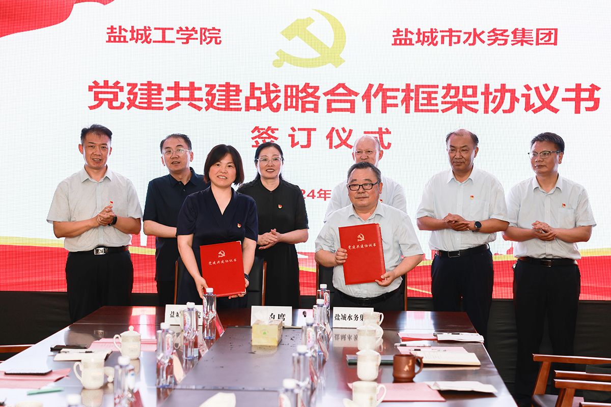 为深入学习宣传贯彻党的二十大、二十届二中、三中全会精神,进一步发挥党建引领作用,促进校企深度合作与资源共享,8月16日下午,我校与盐城市水务集团有限公司在盐龙湖水源地举办党建共建活动。活动开始前,校党委书记方海林,副校长丁成,盐城城投集团党委副书记、总经理郑效青,党委委员、副总经理苗久成就双方合作事宜进行了洽谈并参观了盐龙湖水源地展厅。双方相关部门负责人参加了此次党建共建活动。