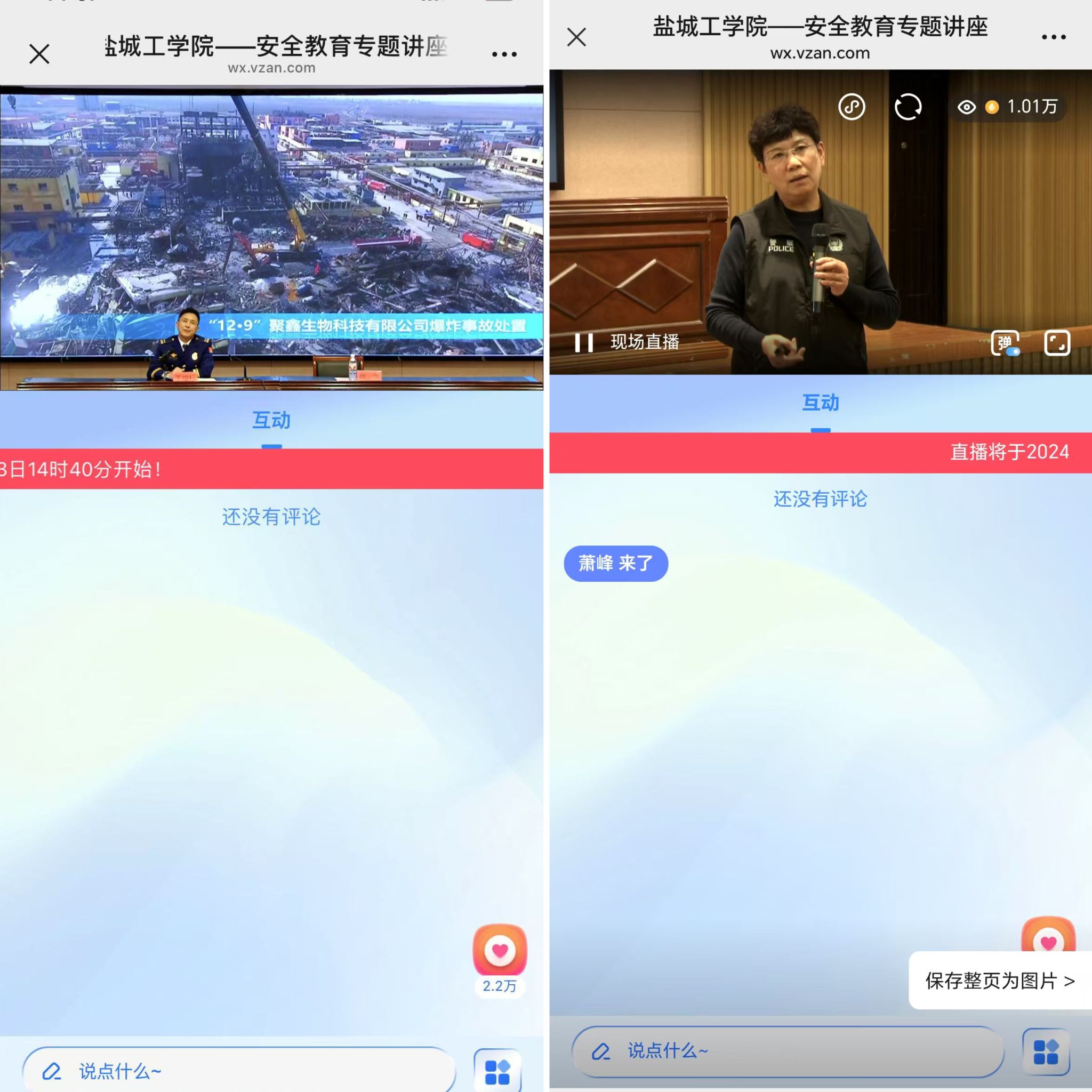 讲座聚焦消防、反诈专题分两场举行,采取线上、线下相结合的方式,在南北校区同步开展。学生干部、学生党员、学生代表等300余人参加,二级学院有序组织学生通过线上直播观看。