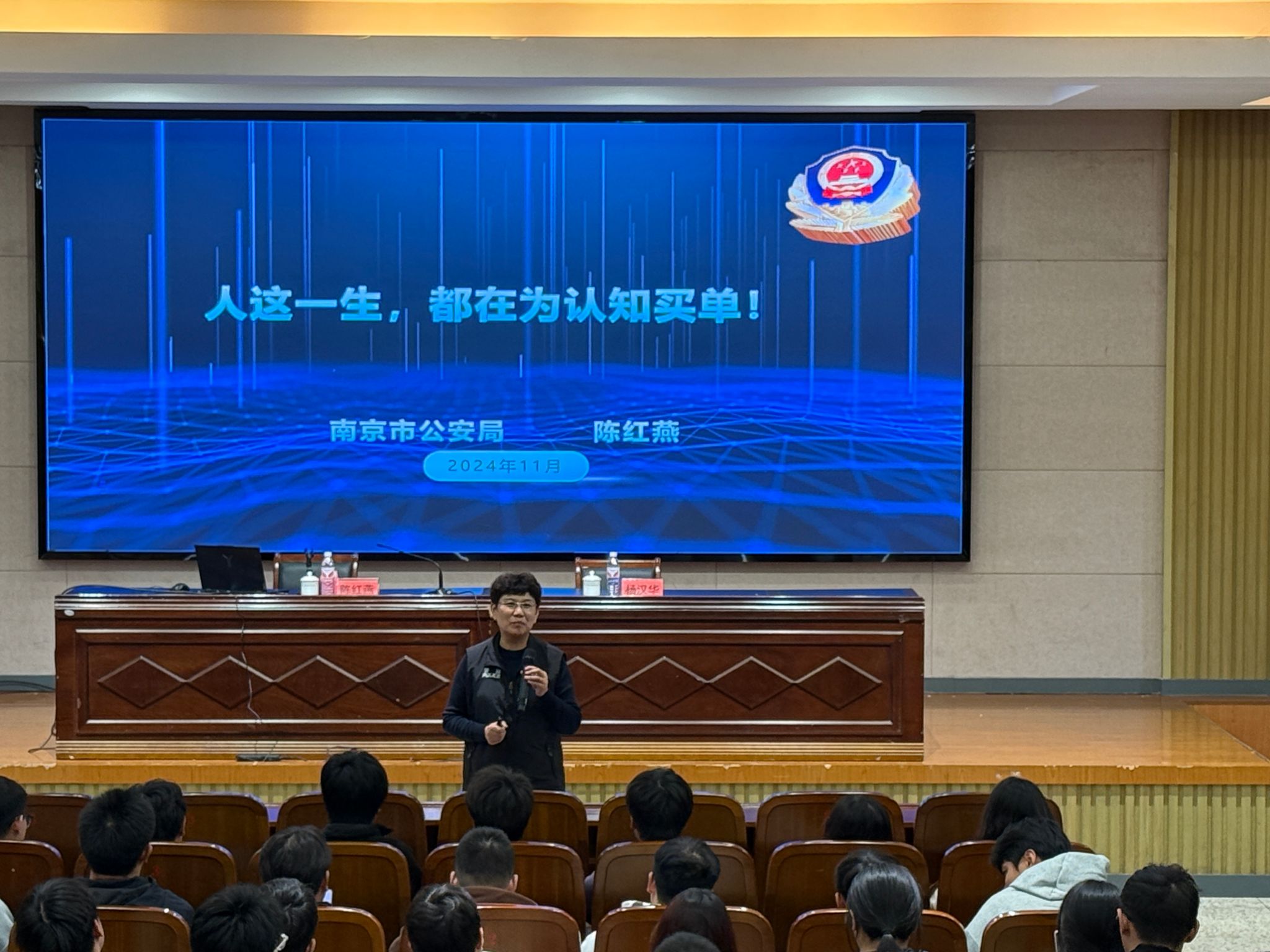 陈红燕作《人这一生,都在为认知买单》反诈专题讲座。她细致讲解了近年来电信网络诈骗违法犯罪涌现出的新技术、新手段,详细介绍了电诈犯罪团伙的组织架构、运营模式和运作逻辑,深入剖析了当前大学生群体的电诈类型和特点。为切实守护好自己的“钱袋子”,她结合真实案例,引导大学生学会如何预防电信诈骗、在遭遇诈骗案后应如何采取补救措施等,鼓励同学们坚持知行合一,将反诈知识运用于实际学习和生活,清醒识别诈骗风险,有效辨别诈骗剧本,准确甄别电诈套路,不断增强防骗意识和识骗能力。