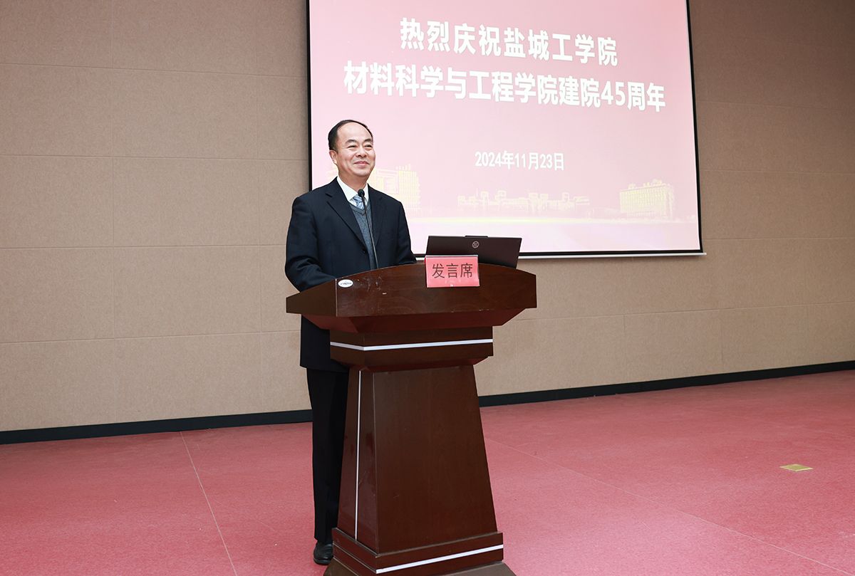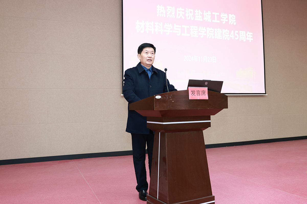 邵荣代表校党委、行政对应邀参加本次活动的各位嘉宾表示欢迎和感谢。他介绍了盐城工学院的历史底蕴、红色基因、绿色发展之路,肯定了材料学院在高质量发展方面取得的成就。他指出,材料学院在人才培养、学科建设、社会服务和文化传承方面都取得了显著成绩,这些成绩源于四十五年来广大师生的共同努力。他希望,校友们常回母校看看,共续师生情谊,为学校的发展献计献策。