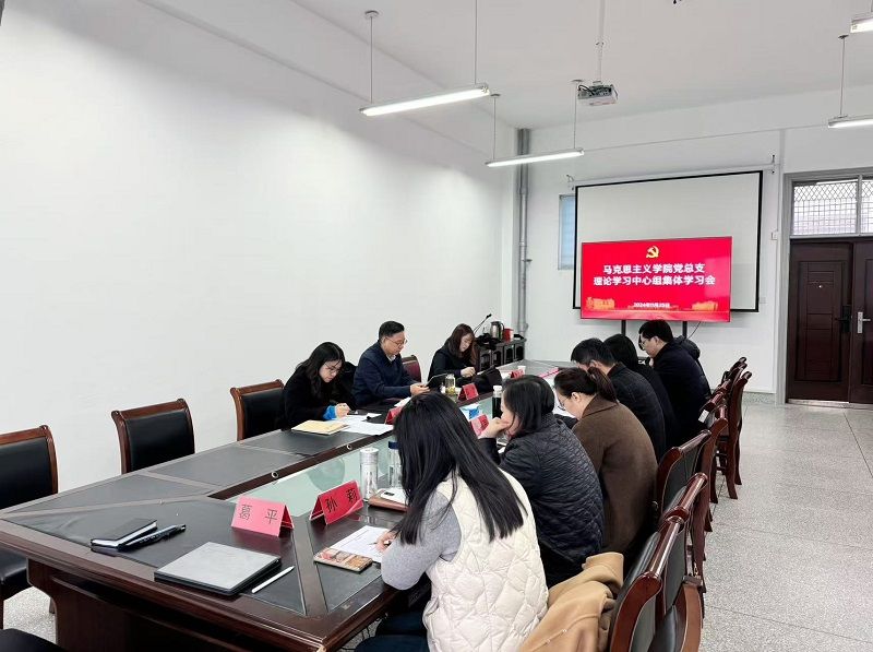 11月25日上午,马克思主义学院党总支理论学习中心组在希望大道校区博学楼A514会议室召开集体学习会。校党委第三巡学旁听组组长、校党委副书记薛浩,校党委第三巡学旁听组成员、党委宣传部副部长赵迎华,校党委第三巡学旁听组秘书杨梁杰旁听指导。会议由马克思主义学院党总支书记、常务副院长胡凌霞主持,马克思主义学院党总支理论学习中心组成员参加。