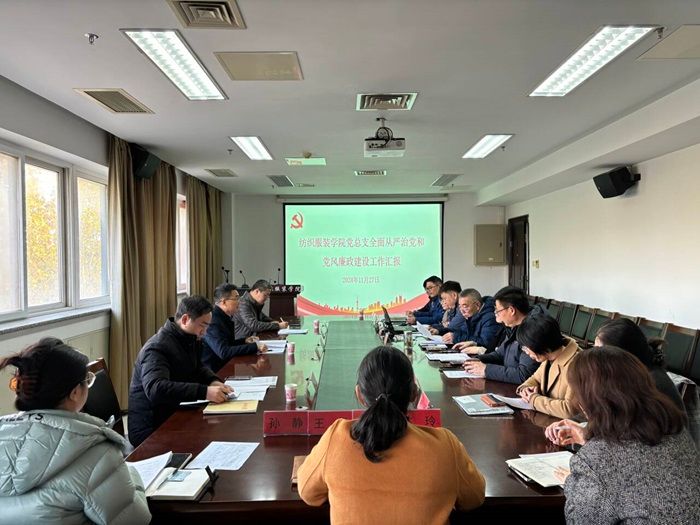 集体研讨学习后,王伟专题调研了纺织服装学院党总支全面从严治党和党风廉政建设工作情况,听取了《纺织服装学院党总支全面从严治党和党风廉政建设工作情况报告》《纺织服装学院纪检委员履行监督责任情况报告》。他强调,全体党员干部要提高政治站位,进一步增强做好全面从严治党的思想自觉、政治自觉和行动自觉,确保党的坚强领导为学院的高质量发展提供坚实的政治保障。