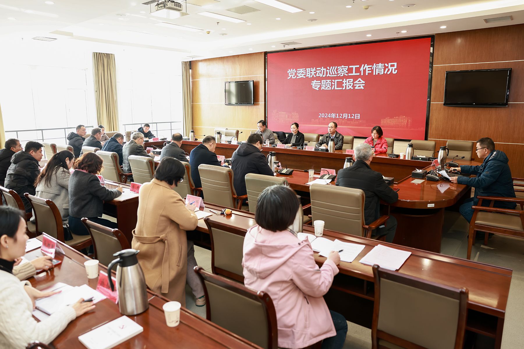 12月12日上午,党委巡察工作领导小组在希望大道校区行政楼9楼视频会议室召开会议,听取党委联动巡察工作情况专题汇报,部署推进联动巡察后续工作。校党委书记、巡察工作领导小组组长方海林出席会议并讲话。校长、党委副书记、巡察工作领导小组副组长邵荣,党委常委、纪委书记、省监委派驻监察专员、巡察工作领导小组副组长陈伟,党委常委、副校长、组织部部长邢晓平,党委常委、统战部部长姚军,党委常委、宣传部部长奚新国等党委巡察工作领导小组成员出席。党委联动巡察组、财务审计组、信访工作组全体成员,巡察办工作人员参加会议。陈伟主持会议。