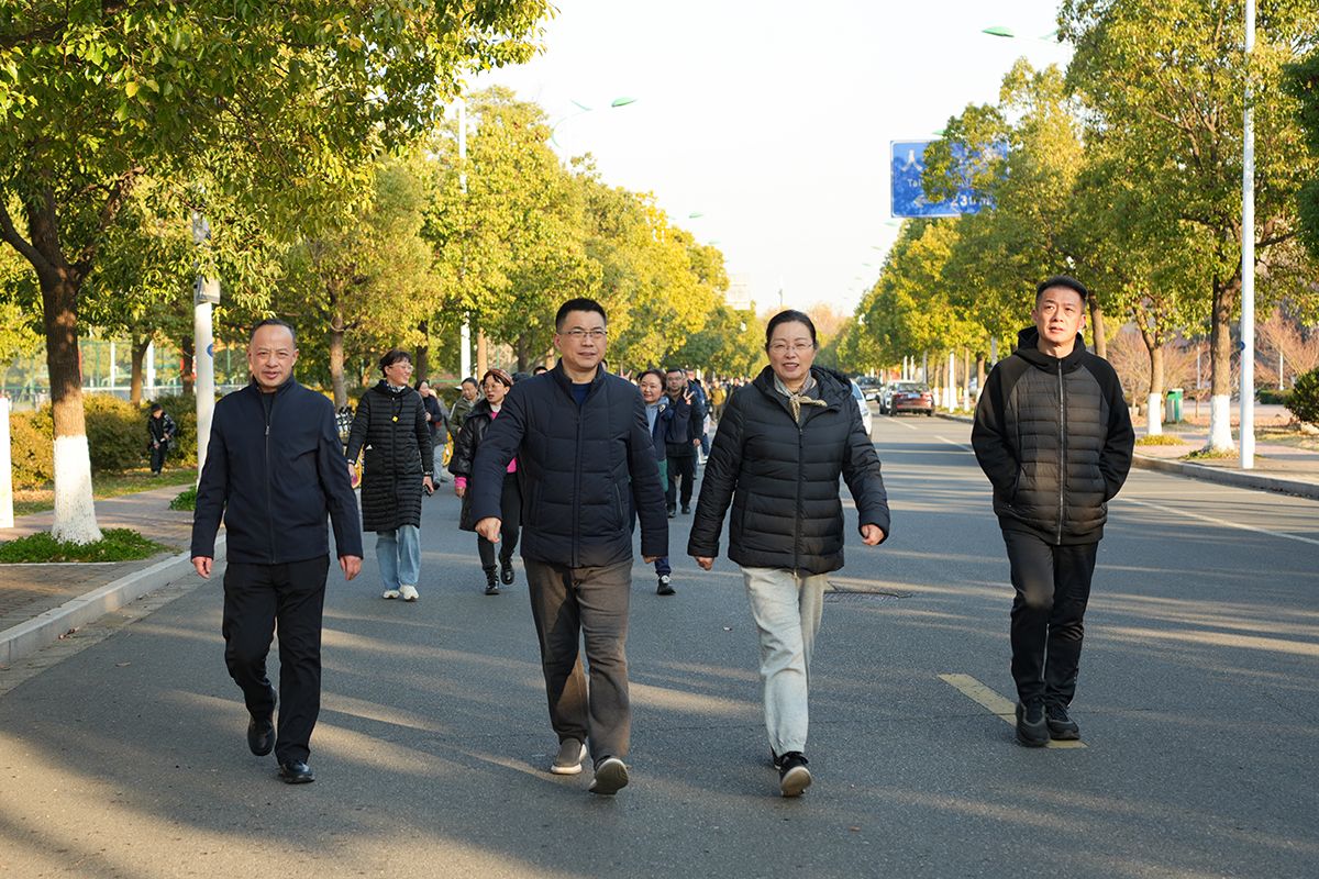 此次健步走活动从风雨操场出发,逆时针绕校园主干道行走,途经行政楼、怀德楼、润美楼、教学楼、土木馆、机械馆,至风雨操场,需打卡集齐5枚印章,全程约2公里。行进路上,大家精神抖擞,或阔步前行,坚定有力地领走在前;或结伴畅谈,边走边观赏校园景色,节奏紧凑而有序、气氛轻松而愉悦,构成了冬日校园里一道别样的风景线,展示了机关党员干部职工积极向上、充满活力的精神风貌。