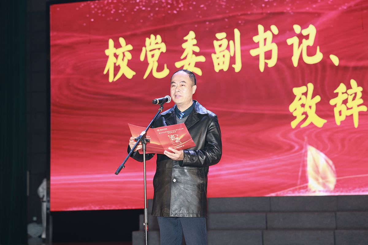 邵荣代表学校向全体师生员工、广大校友以及长期以来关心支持学校发展的社会各界朋友致以诚挚的问候和美好的新年祝福。他指出,2024年,盐工的事业画卷,被一个个砥砺前行的身影描绘着,盐工的奋斗目标,在一个个日夜兼程中努力实现着。这一年,盐工初心如磐,笃行志远,学校连续4年获得江苏省属高校综合考核“第一等次”,成功获批江苏省首批一流应用型本科高校建设单位,顺利通过教育部本科教育教学审核评估,影响力和美誉度进一步扩大;不负韶华,逐梦前行,1212名本科生考取清华大学、悉尼大学等国内外知名高校硕士研究生,本科升造率近24%,人才培养成效进一步显著;创新驱动,不断突破,学校参与的项目获国家科技进步二等奖,实现历史性突破,科技创新能力进一步增强;锚定目标,聚势发展,开放办学水平进一步提升。他勉励全校师生振奋精神、赓续前行,以实干担当开启新征程,不断为学校高质量发展贡献新的力量。