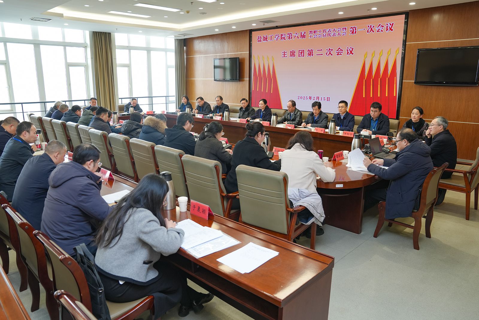下午,主席团全体成员、各代表团团长在行政楼9楼视频会议室召开主席团第二次会议。会议听取各代表团团长关于讨论情况的汇报,讨论通过了第六届教代会执行委员会、工会委员会及5个各专门委员会候选人、选举大会总监票人、监票人、总计票人、计票人建议名单以及大会选举办法(草案)和大会决议(草案)。