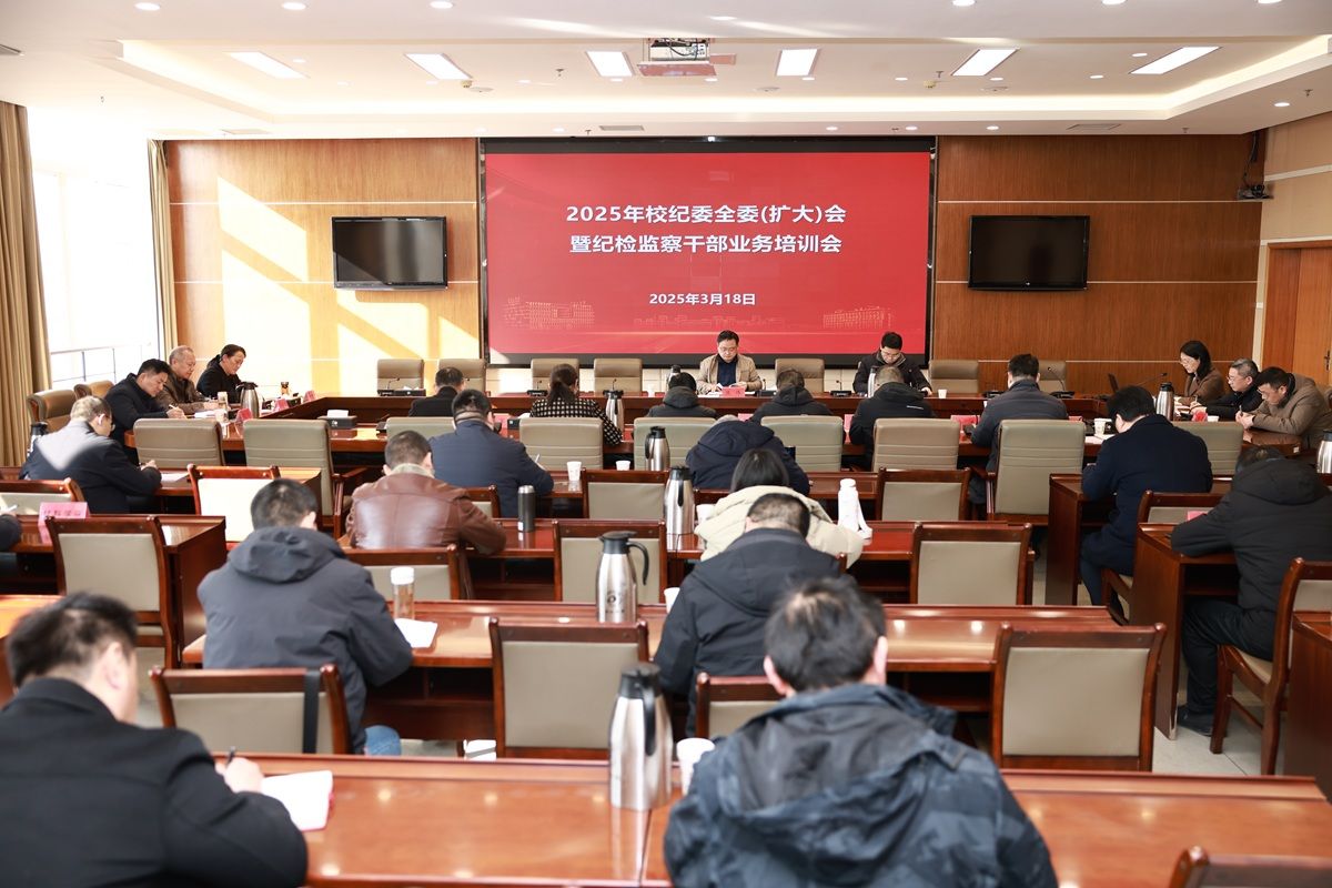 3月18日上午,学校在希望大道校区行政楼9楼视频会议室召开2025年纪委全委(扩大)会暨纪检监察干部业务培训会。校党委常委、纪委书记、省监委派驻监察专员陈伟出席并讲话。校纪委副书记吴登国主持会议。校纪委委员、二级党组织纪检委员、纪委机关全体人员参加会议。