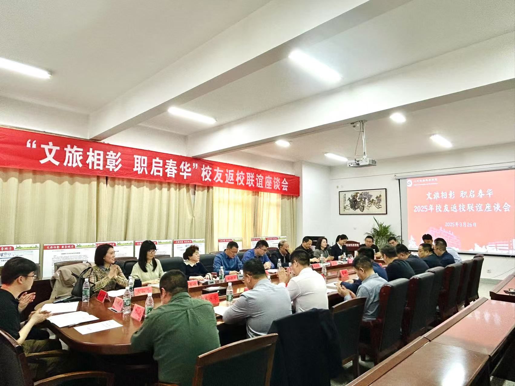 3月27日,学校在南校区仁和楼A304会议室组织召开“文旅相彰 职启春华”校友返校联谊座谈会。学校党委常委、副校长张勤芳出席会议。学校原后勤保障集团总经理张兵,原人文学院党总支书记闻建平,人文学院党总支书记何登溢、院长周晓燕,校友会办公室副主任曹玉娟及校友代表参会。人文学院党总支副书记姚爱华主持。