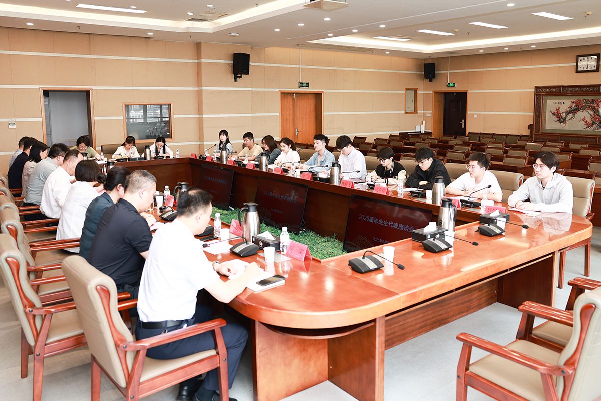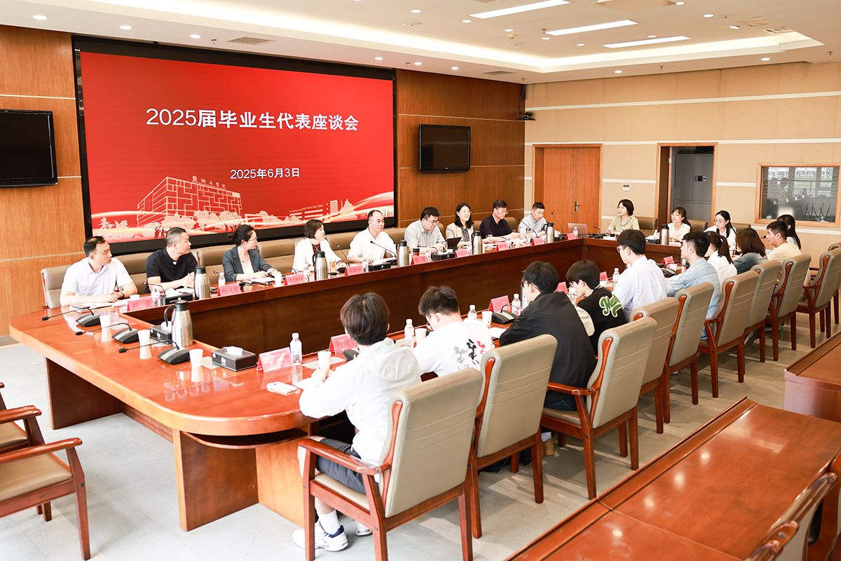 6月3日下午,在希望大道校区行政楼9楼视频会议室,学校召开毕业生代表座谈会。校长、党委副书记邵荣,党委常委、副校长张勤芳,党委常委、副校长、组织部部长邢晓平出席,学生处、教务处、研究生院、后勤服务集团、设艺学院、环境学院等部门、学院负责同志,2025届毕业生代表参加。邢晓平主持会议。