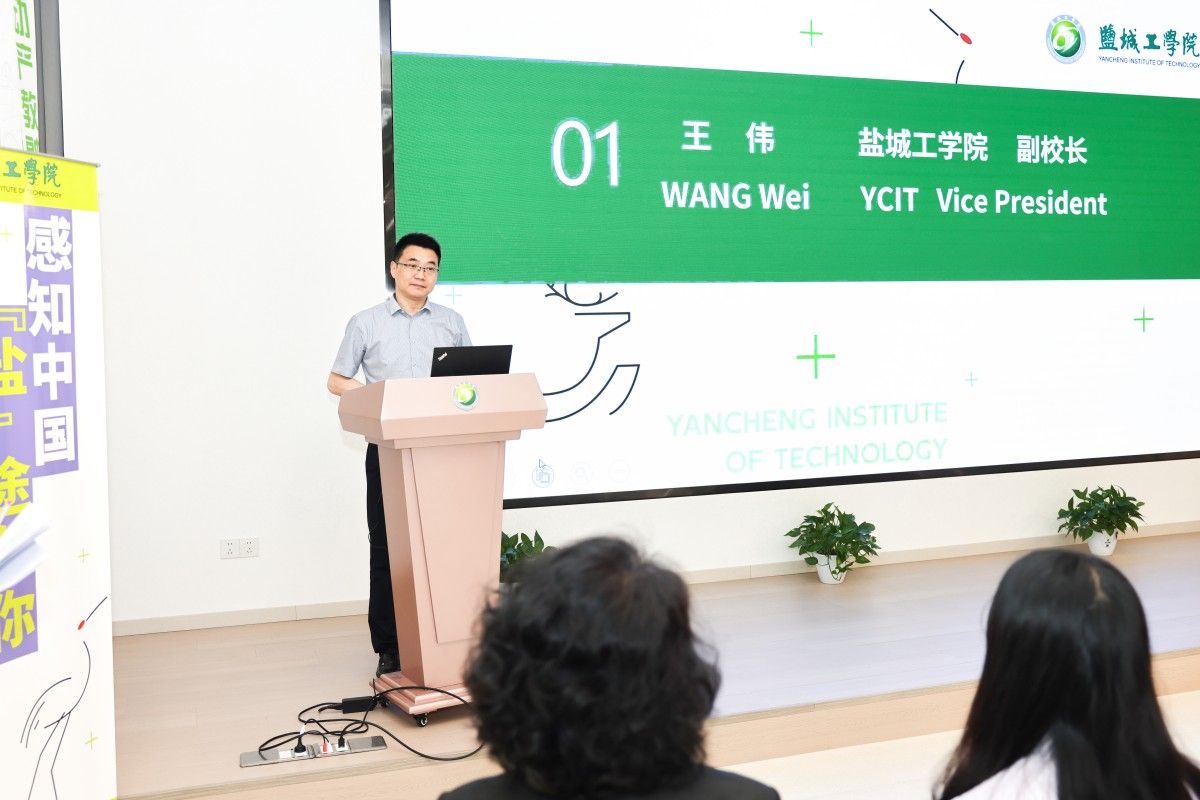 王伟对参加暑校的师生表示热烈欢迎,并简要介绍了学校的办学特色及国际化成果。他指出,我校与英国格林威治大学有着20年的深厚合作友谊,此次格大学生来校参加暑校既是两校教育合作的深化,更是中外青年文化对话的重要契机。本次暑校将为学生们提供沉浸式的中国文化体验,让学生们近距离感受盐城、感受江苏、感受中国的发展脉搏。他希望大家在交流中深化了解,建立友谊,共同书写一段难忘的盐工记忆。
