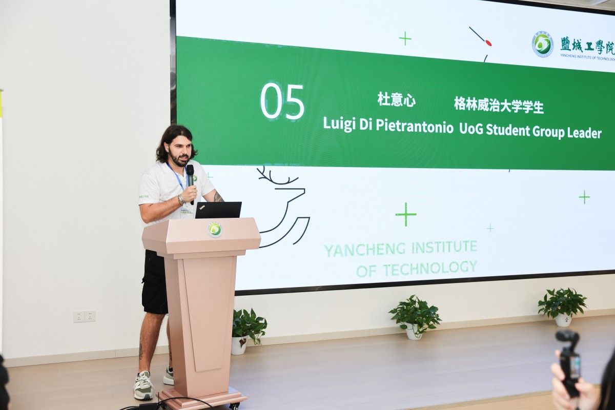 我校国合班学生代表吴宇桐和英方学生代表 Luigi Di Pietrantonio 先后发言。吴宇桐表示,非常珍惜这次与格大学生交流的机会,期待与大家分享观点、交流经验、结成伙伴,让青春的友谊恒久长存。英方学生代表 Luigi Di Pietrantonio感谢盐工提供的宝贵机会,表示将努力学习中国的语言、历史和文化,并将其带回英国,让更多人了解中国文化,并表达了对此次夏令营的喜悦与期待。