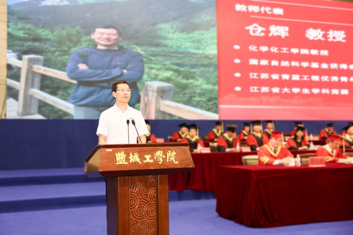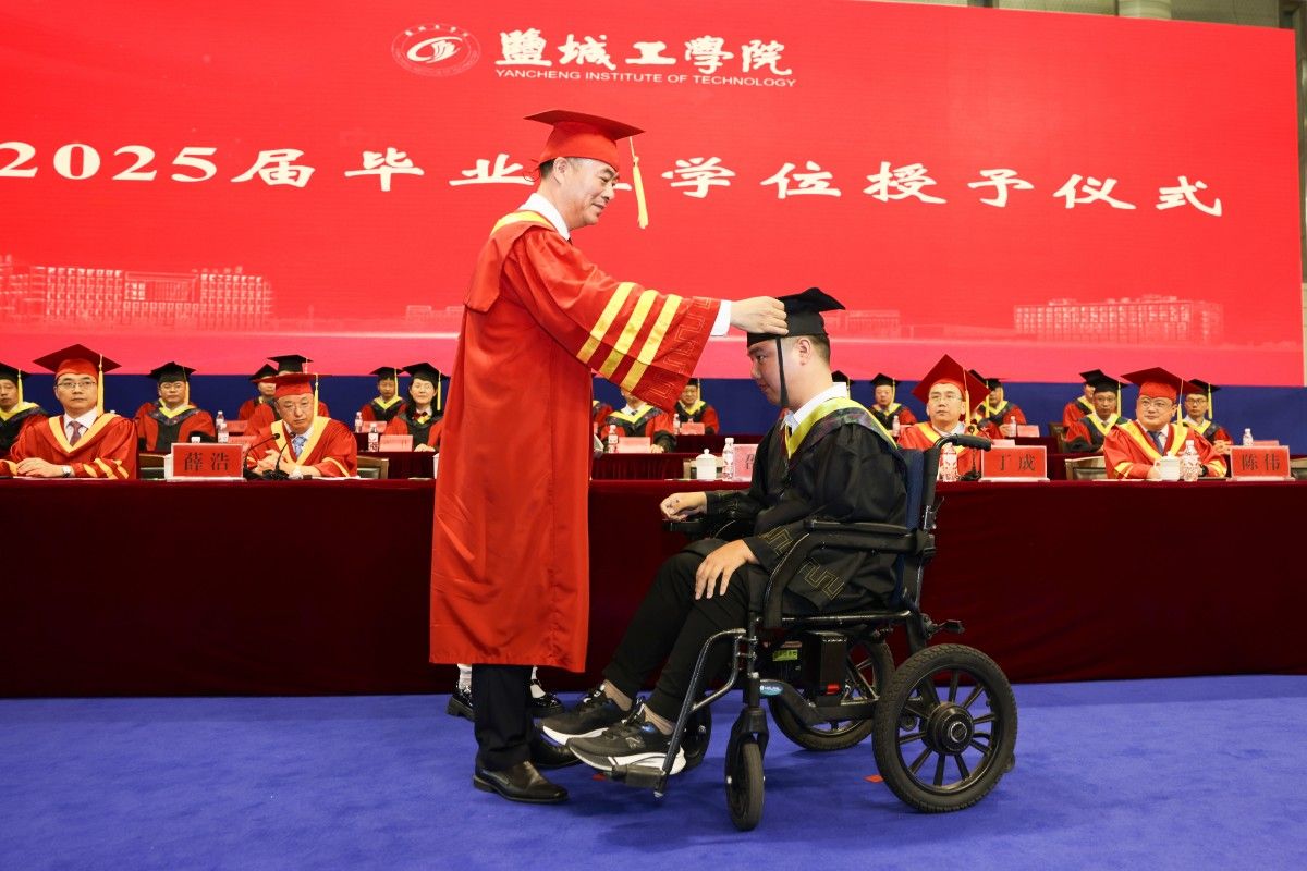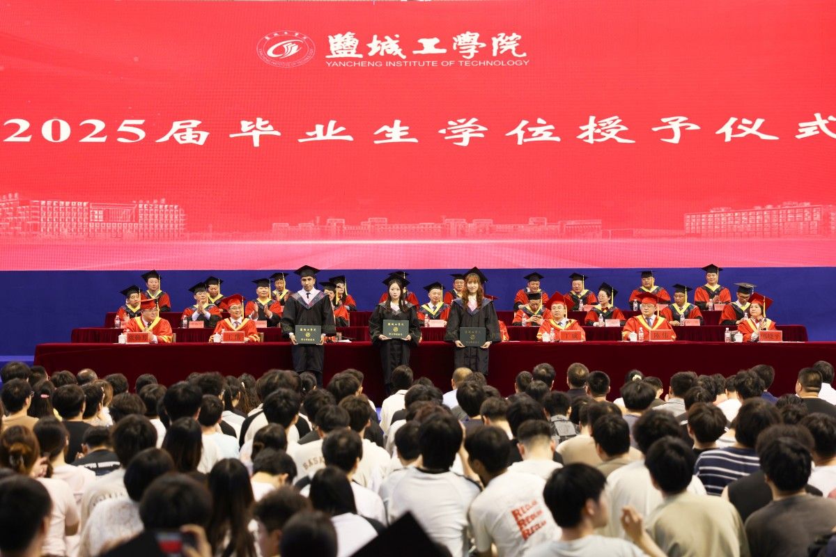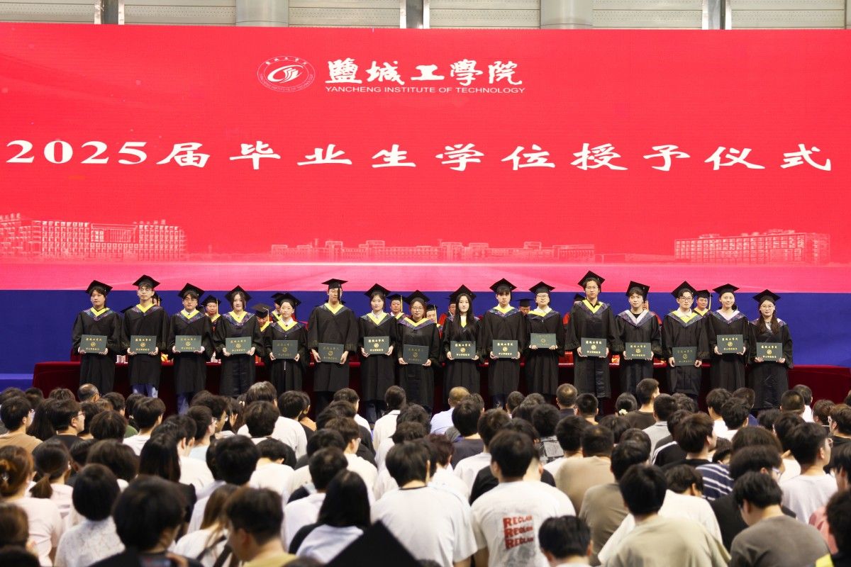6月13日上午,在建军东路校区体育馆,学校隆重举行2025届学生毕业典礼。校党委书记方海林,党委副书记、校长邵荣,党委副书记薛浩,副校长、盐城市政协副主席丁成,党委常委、副校长王伟,党委常委、纪委书记、省监委派驻盐城工学院监察专员陈伟,党委常委、副校长张勤芳,党委常委、副校长、组织部部长邢晓平出席。毕业典礼由邢晓平主持。