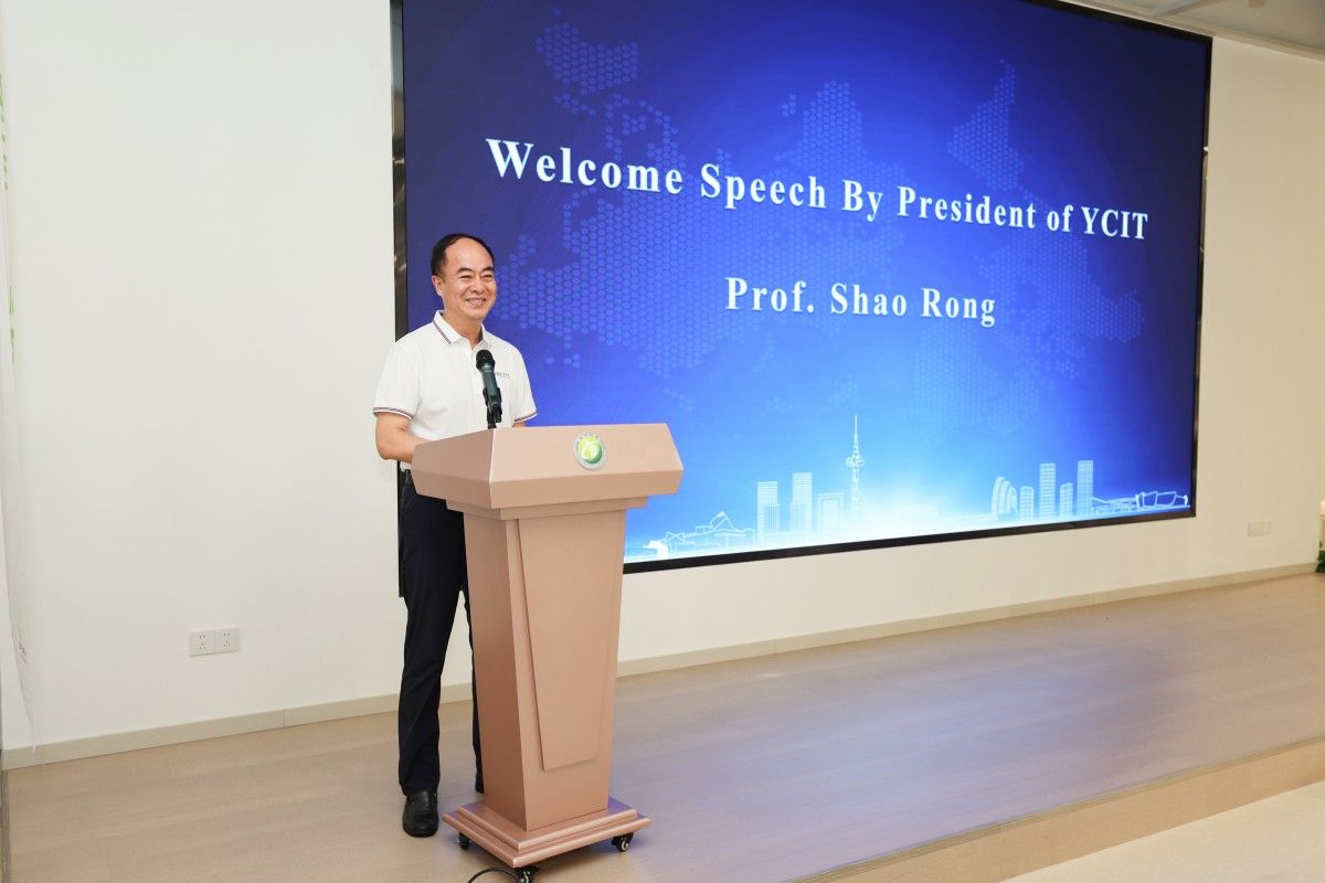 欢迎仪式上,邵荣代表学校致欢迎辞,向远道而来的美国师生们表示热烈欢迎,向营员们介绍了盐城的概况以及我校的办学理念、办学规模、办学特色等。他希望,通过此次交流活动,他们能够更加深入地了解中国的教育、文化和社会发展,并化作中美文化交流的使者传递这份真诚的中美友谊,也欢迎他们常来中国、常来盐城。